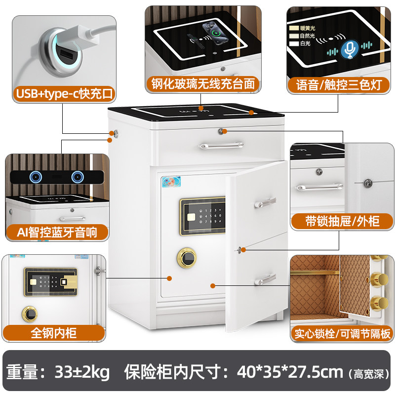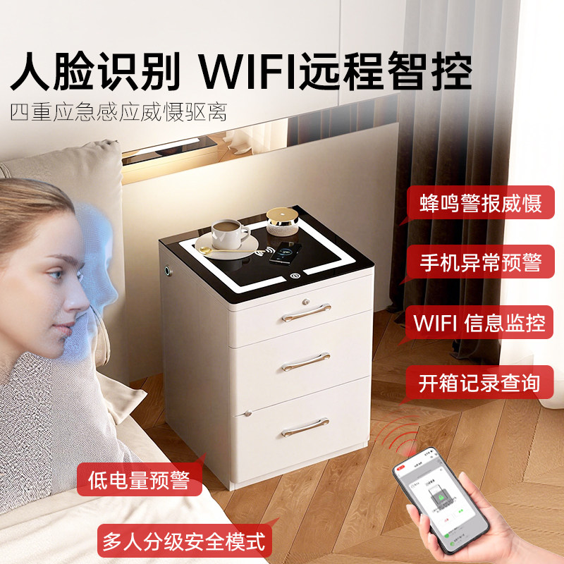 2026新款虎牌60cm远程WIFI报警高端保险柜家用带床头柜保险箱一体小型防盗简约现代智能密码办公抽屉卧室