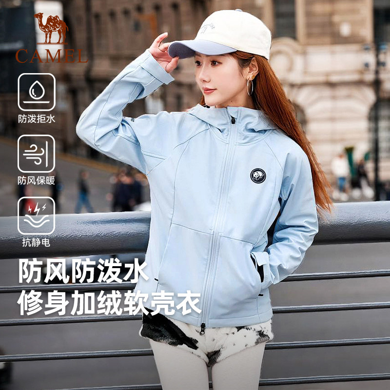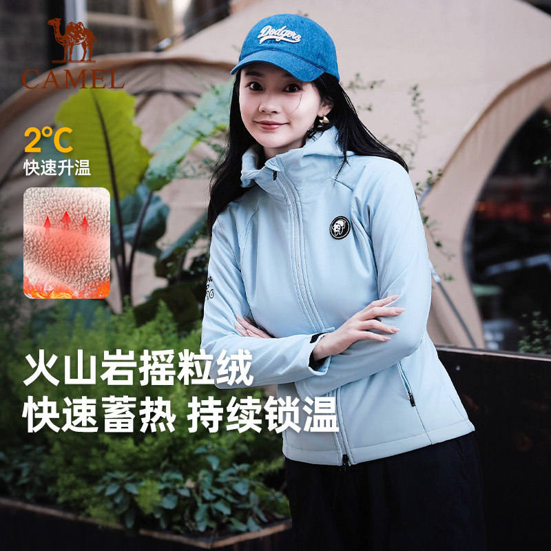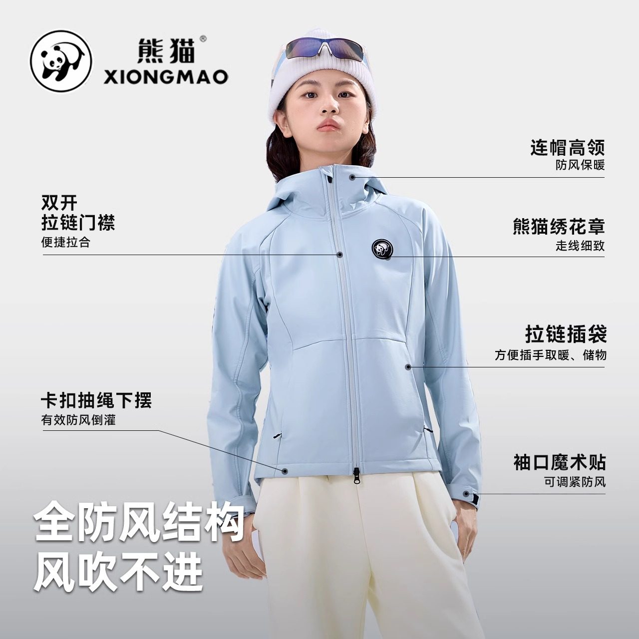 熊猫户外加绒软壳衣女款2025秋冬防水防风外套骑行运动外套
