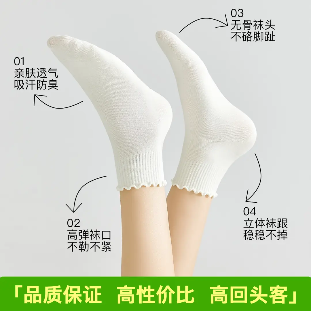 【下单立减50】木耳边袜子女棉袜无骨短袜夏季薄款透气吸汗中筒PX