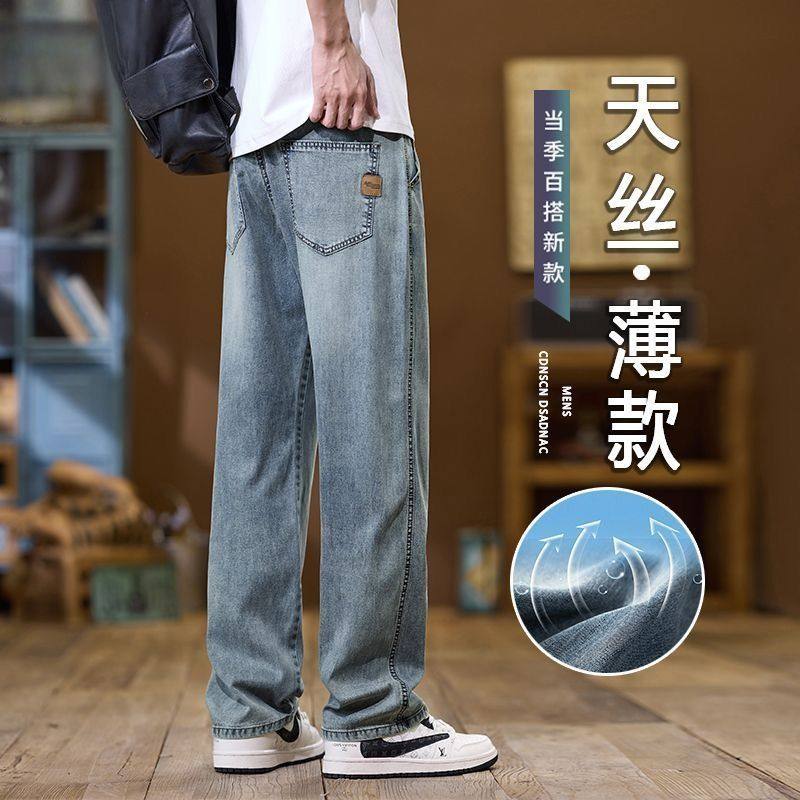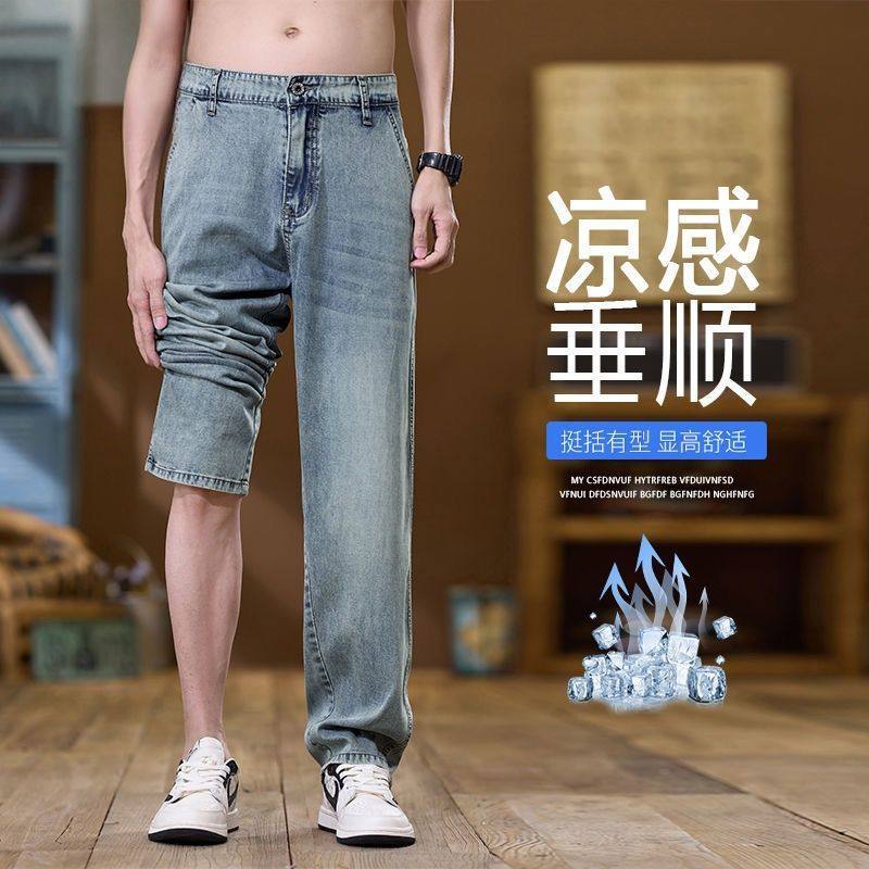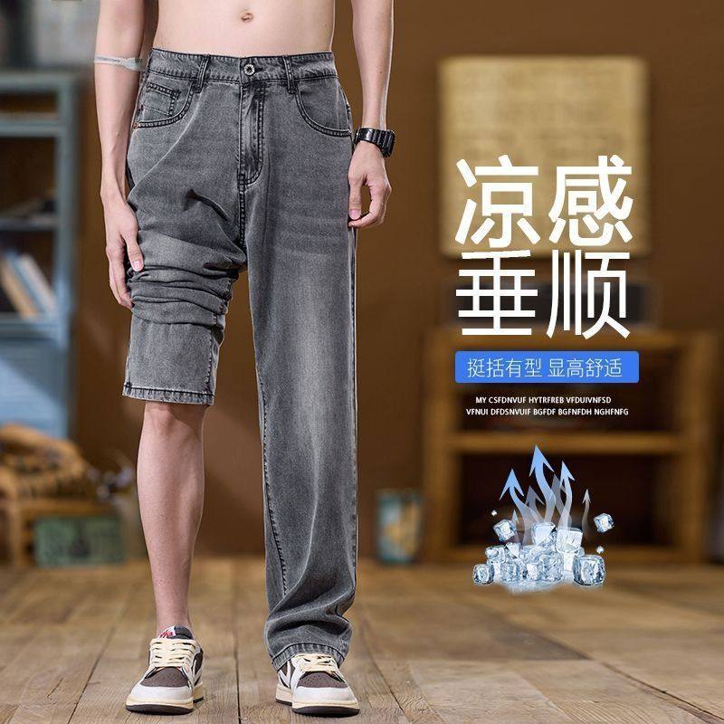 男士超薄赛尔冰丝牛仔裤2025夏季薄款新款宽松直筒休闲潮流长裤子