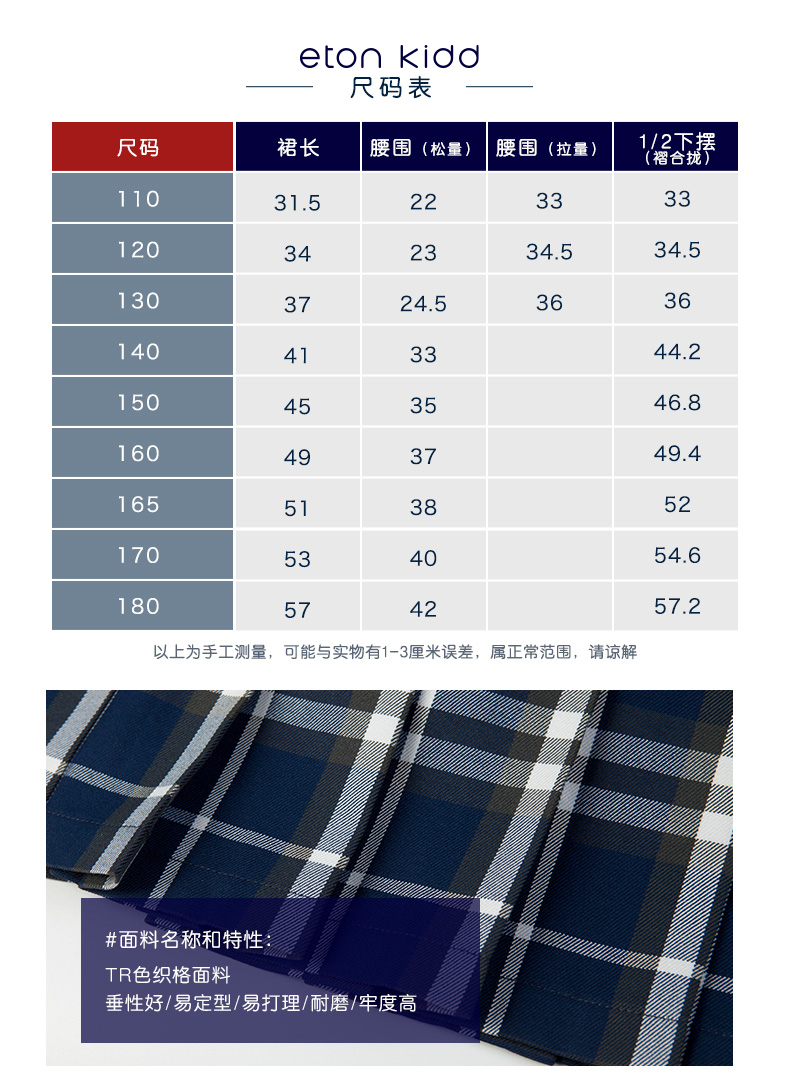 伊顿纪德校服童装女童格子半身裙大童百褶裙儿童时尚裙子13Q209惠