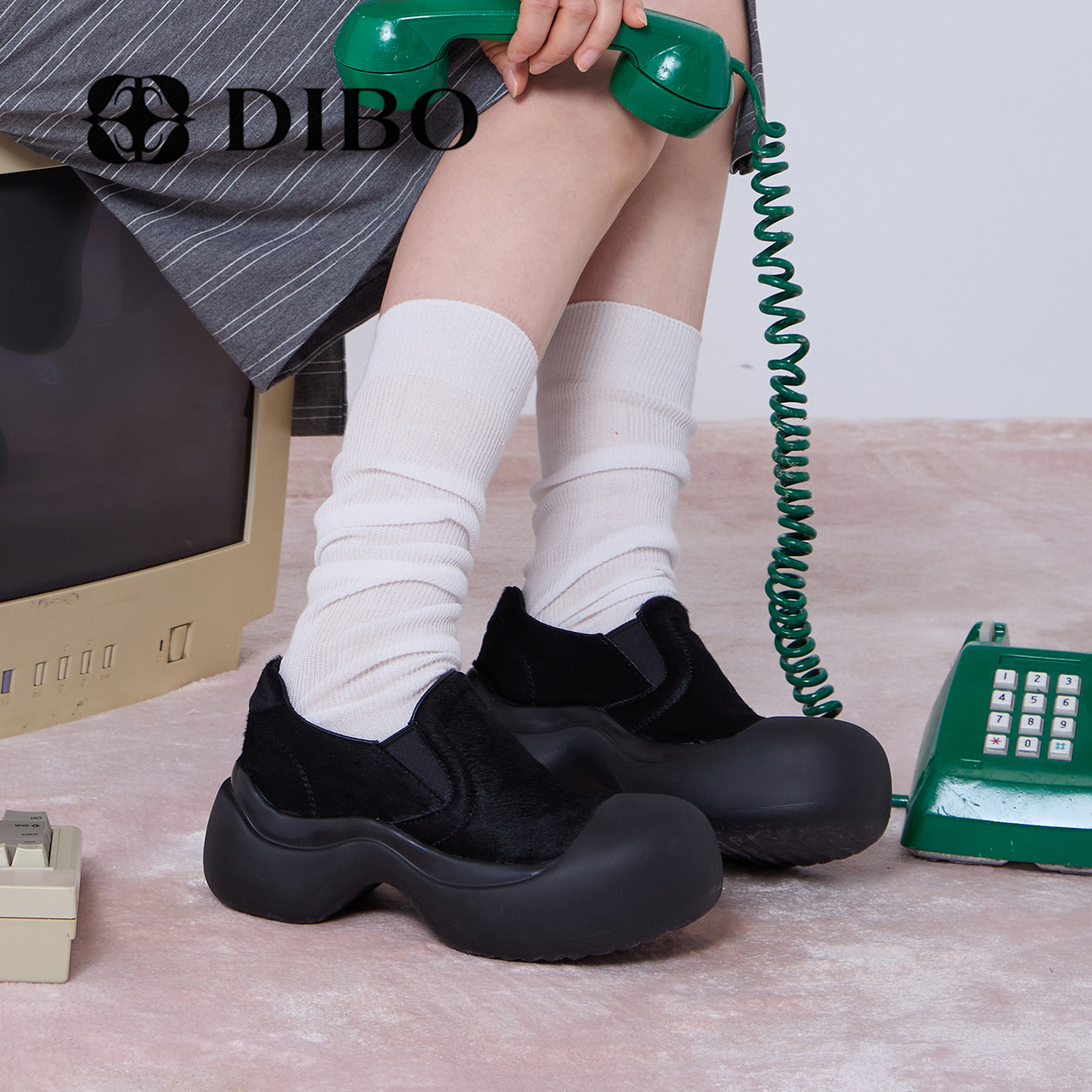 DIBO碲铂商场同款厚底浅口单鞋女2026年春季纯色百搭休闲鞋女