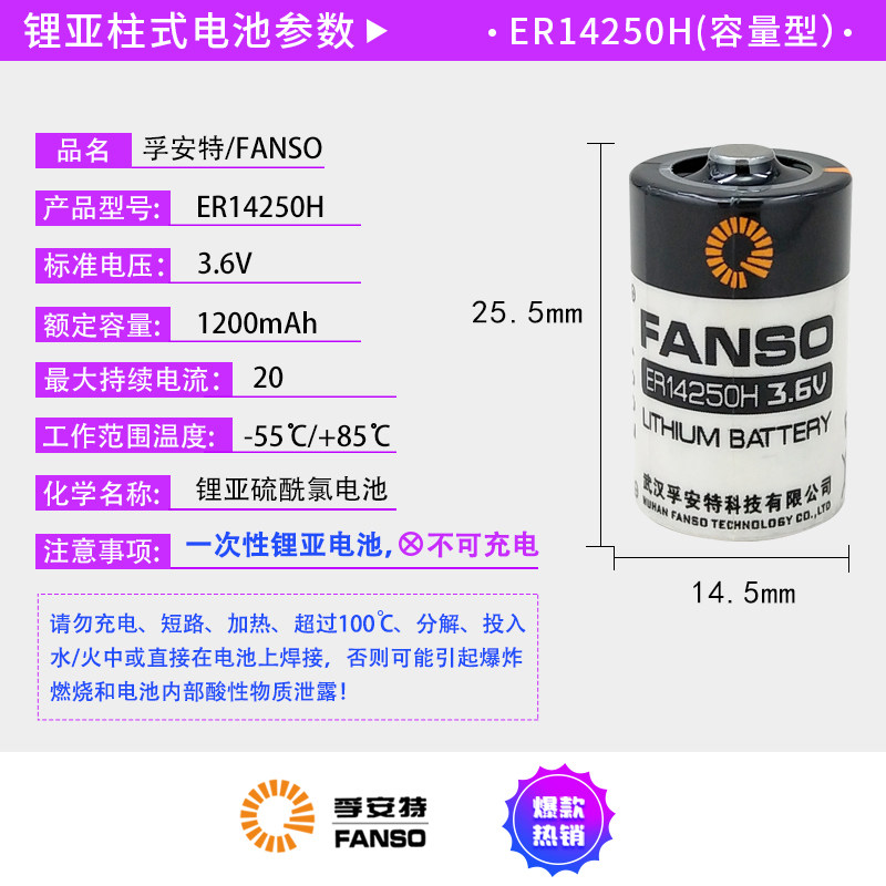 孚安特ER14250H 锂电池3.6v瞄准器ETC台达编程器ETC流量计PLC设备