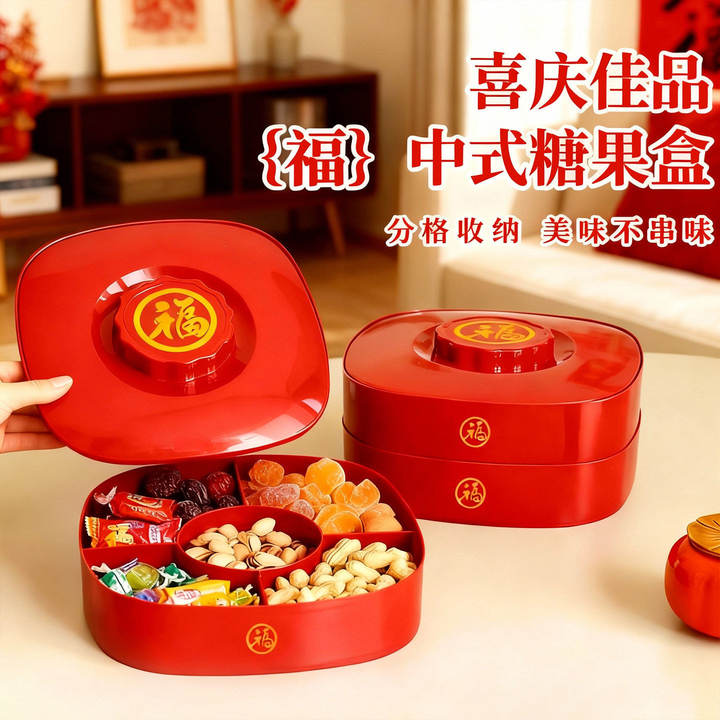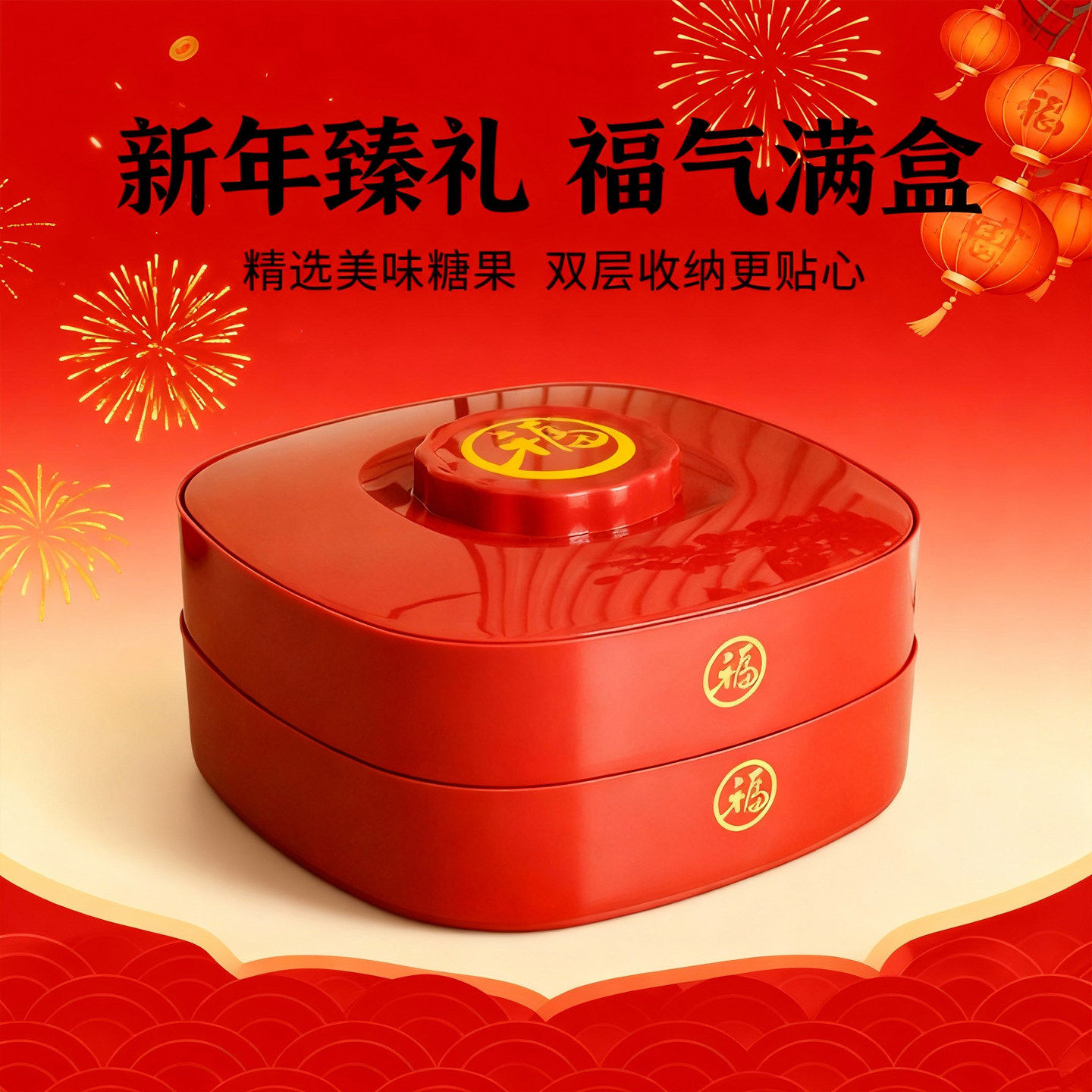 新年喜庆中式双层瓜子糖果果盘