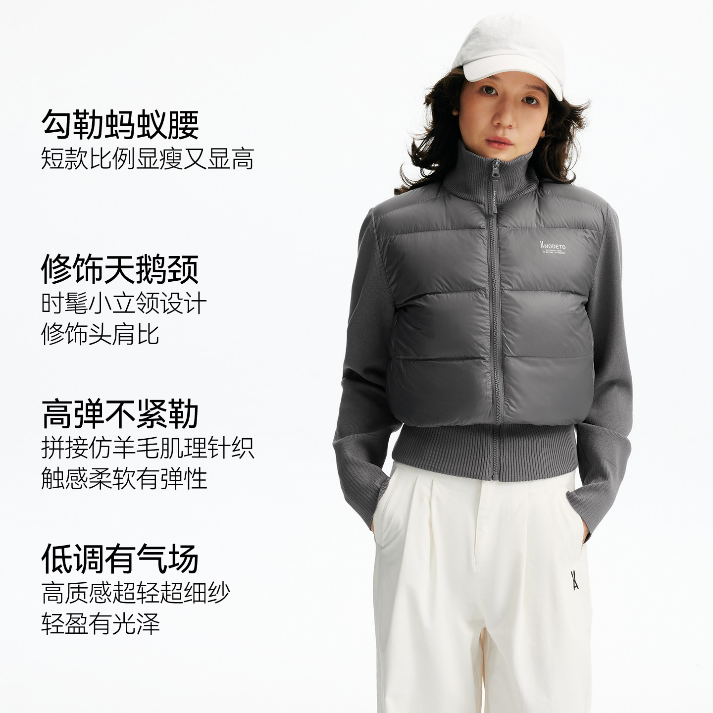 【限时直降】安欧兔【蚂蚁腰】针织弹力羽绒服女立领运动棉服外套