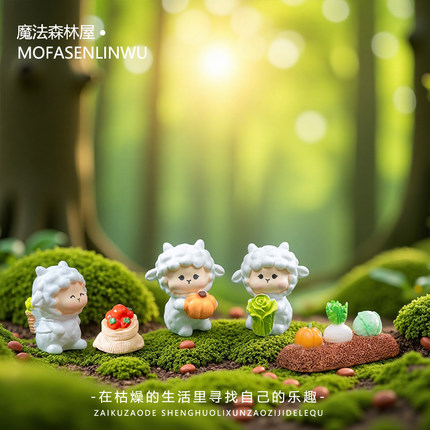 可爱小绵羊萌粒园艺盆景苔藓造景微景观装饰品娃娃屋桌面小摆件