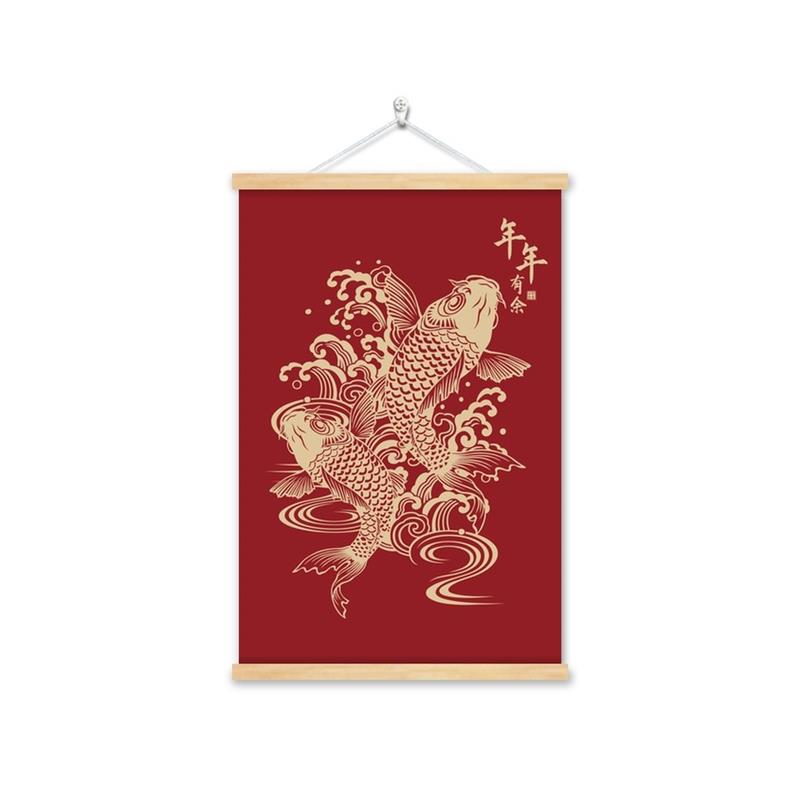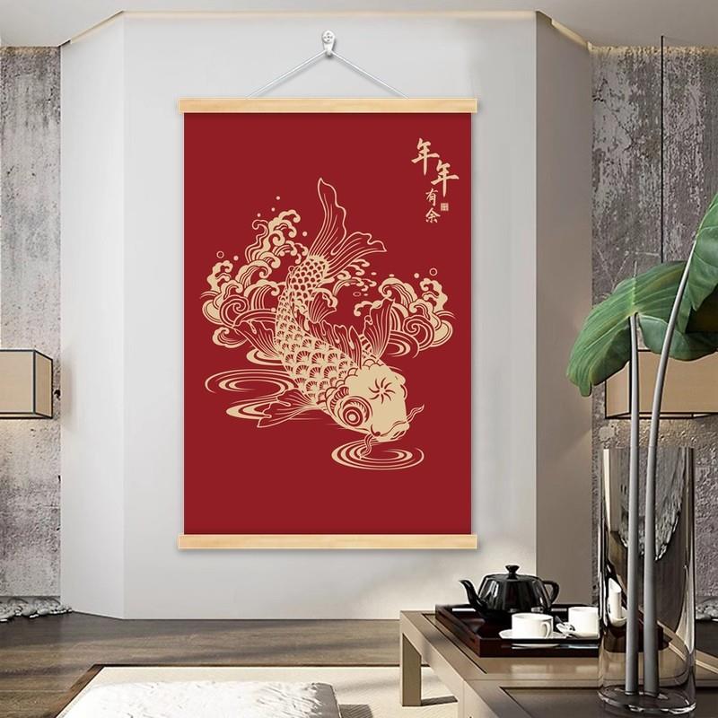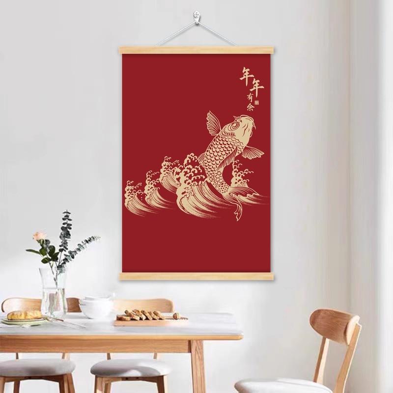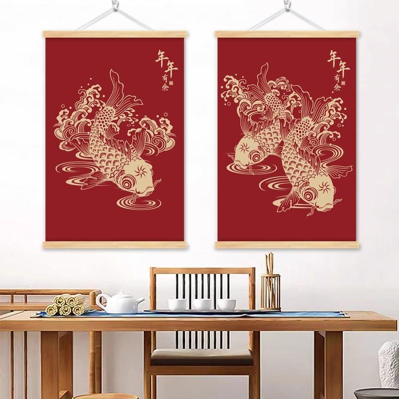 年年有余挂画锦鲤鱼装饰画新中式客厅沙发背景墙壁画餐厅喜庆挂布