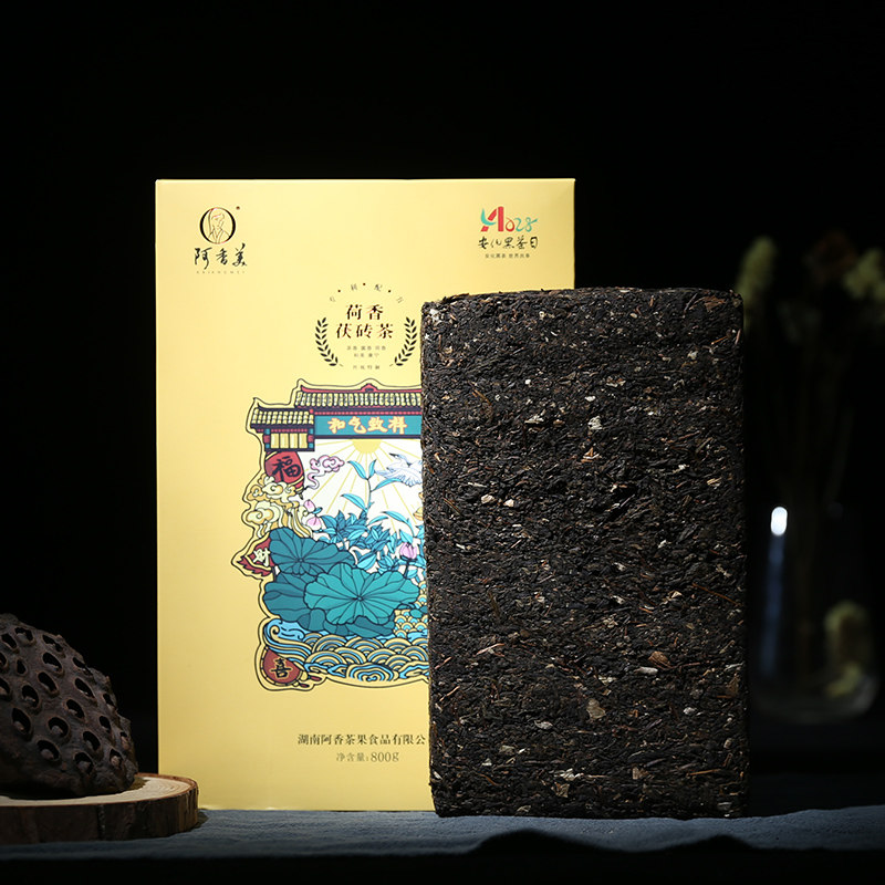 安化黑茶官方旗舰店湖南特产正品荷香荷叶金花茯砖特级茶叶礼盒装