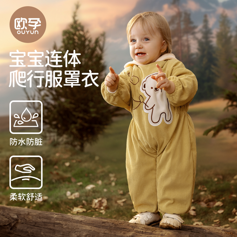 欧孕宝宝连体罩衣春夏婴儿爬行防水防脏爬爬服反穿衣儿童吃饭围兜