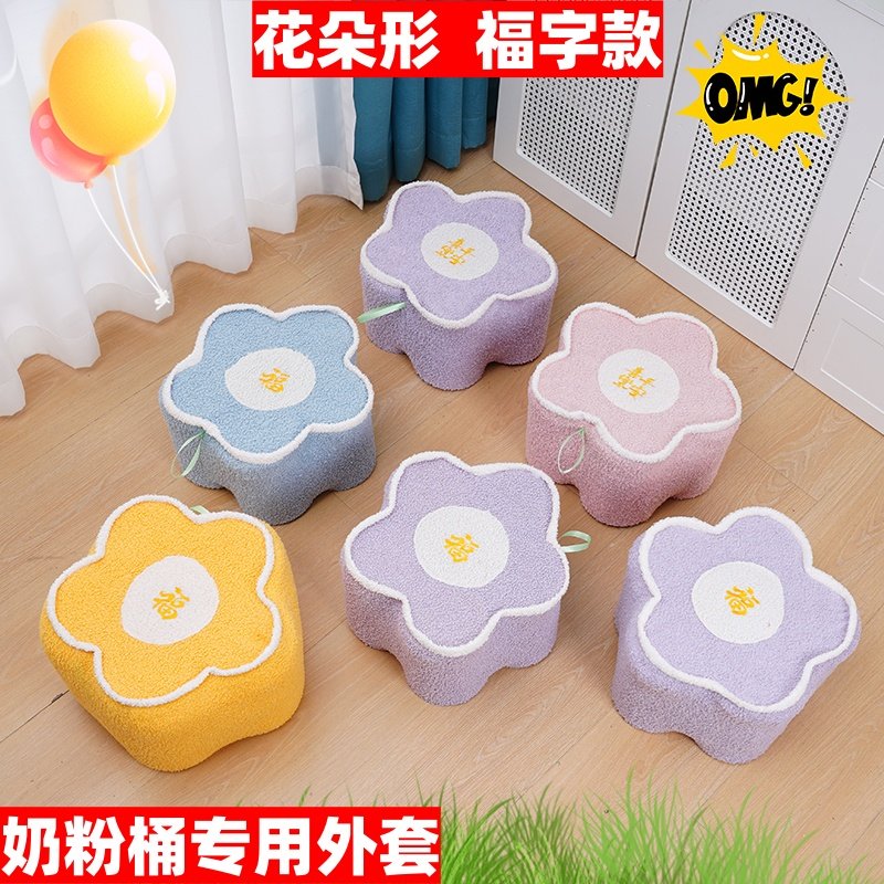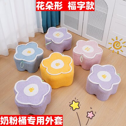 奶粉罐自制凳子套罩花朵改造布套diy材料免缝成品花瓣创意可拆洗