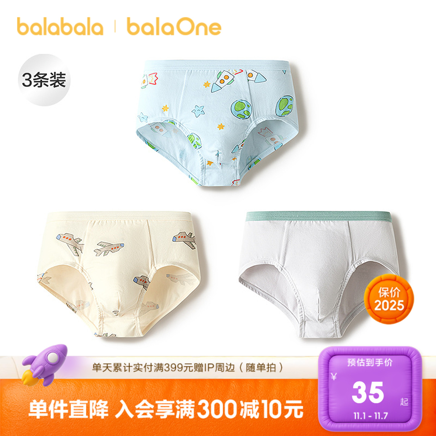 巴拉巴拉儿童内裤三角棉男童短裤宝宝三角裤不夹PP三条装2025新款