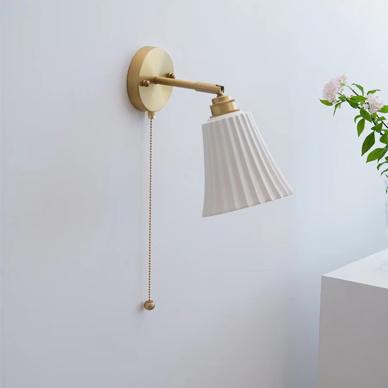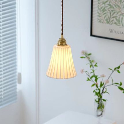 速发全光谱法式复古白色陶瓷吊灯美式全铜卧室餐厅客厅玻璃奶油风