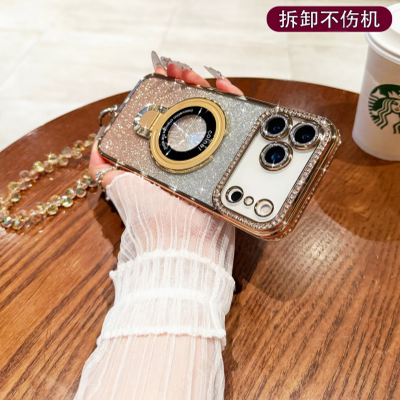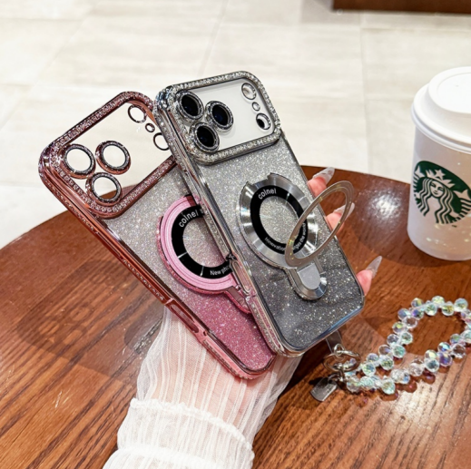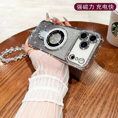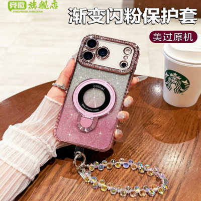 适用苹果17promax手机壳新款闪粉磁吸支架iphone16pro镜头全包高端奢华15防摔男女保护套Air高级感水钻plus杨