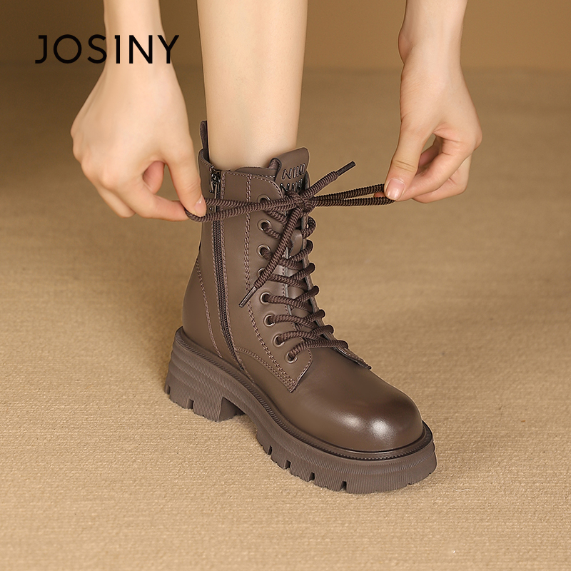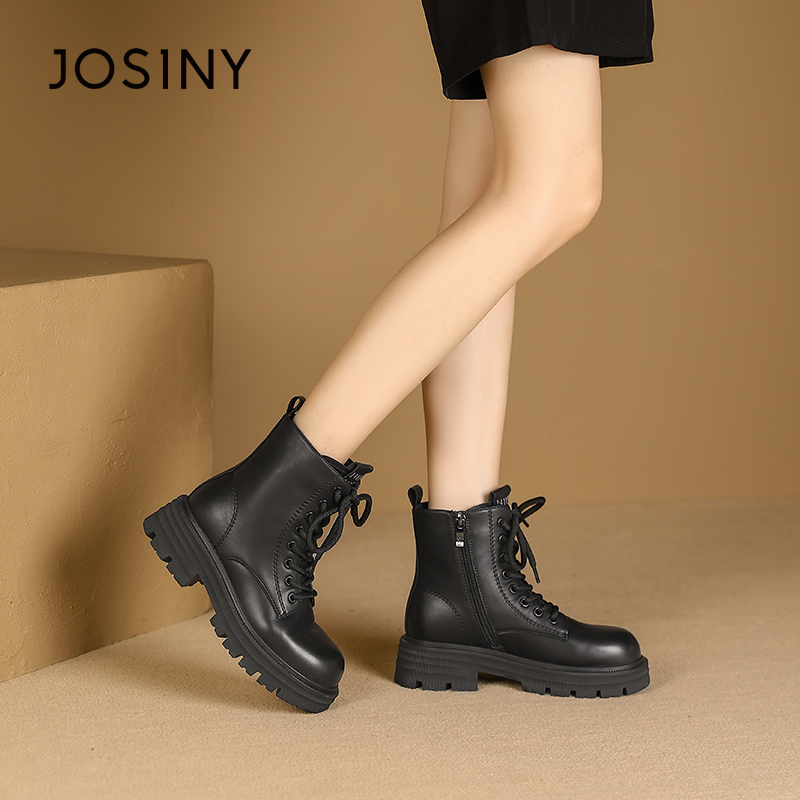 卓诗尼马丁靴女时尚新款秋冬百搭加绒保暖棉鞋女厚底防滑短靴女靴