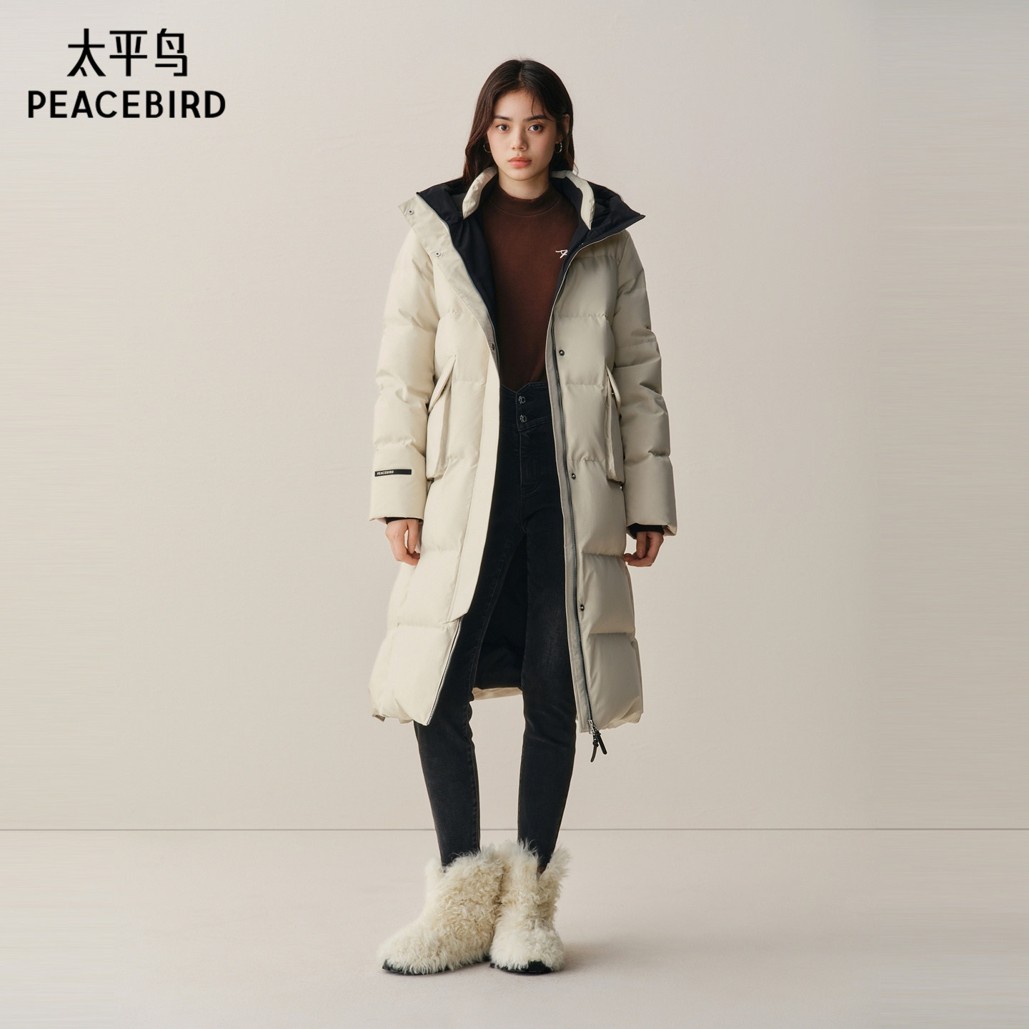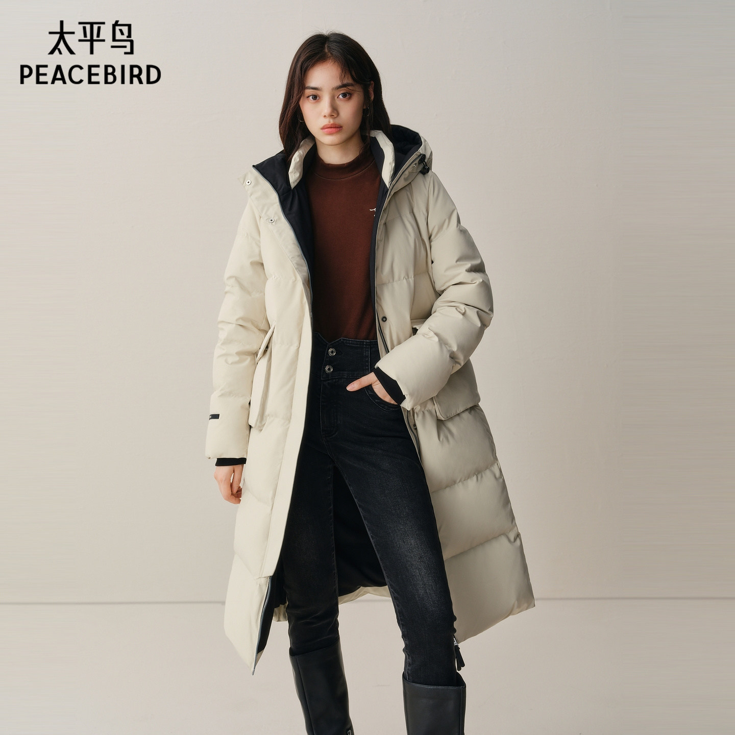 太平鸟白色中长款三防羽绒服女2025年新款90白鸭绒御寒保暖外套