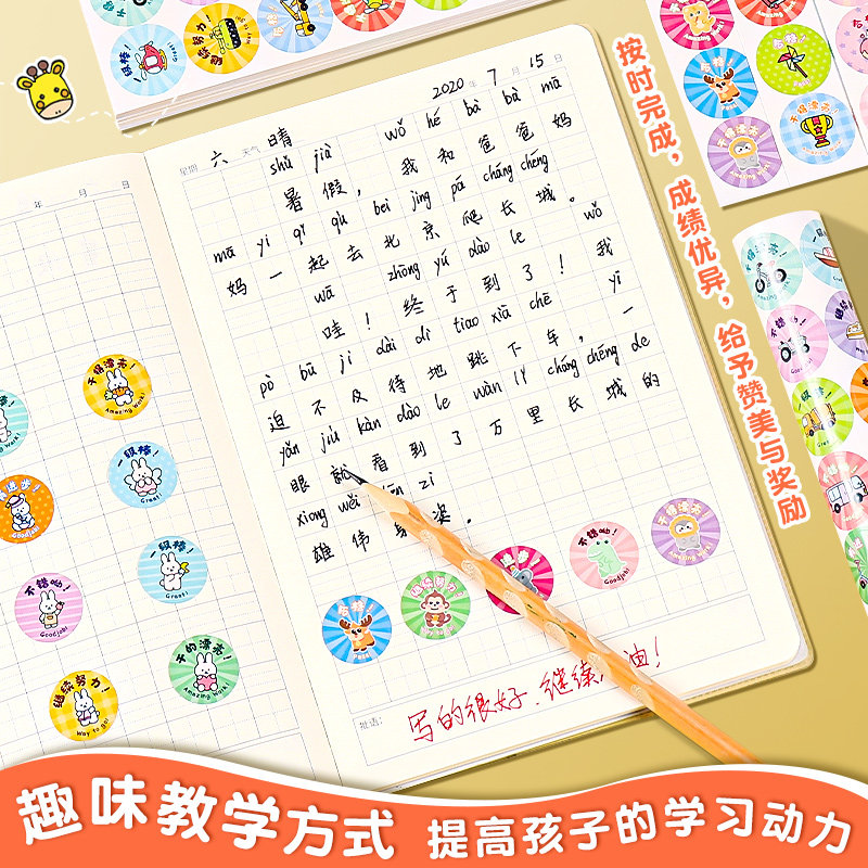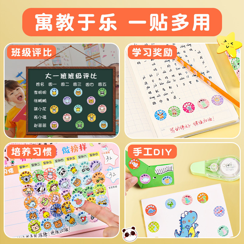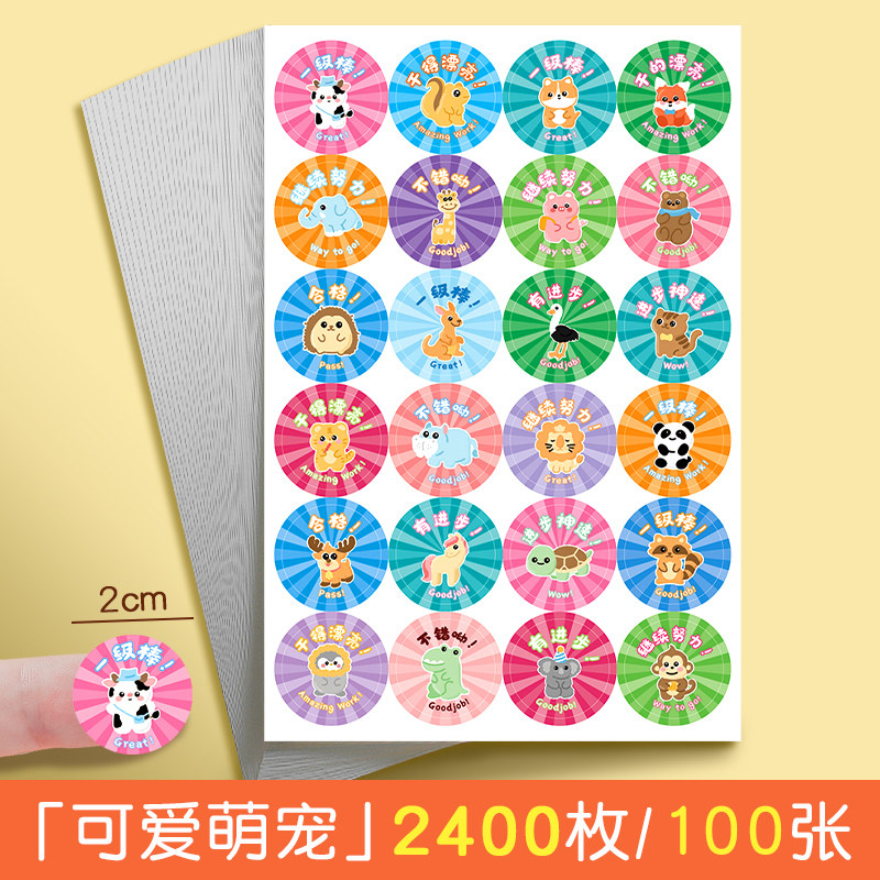 儿童奖励贴纸卡通圆形表扬贴可爱
