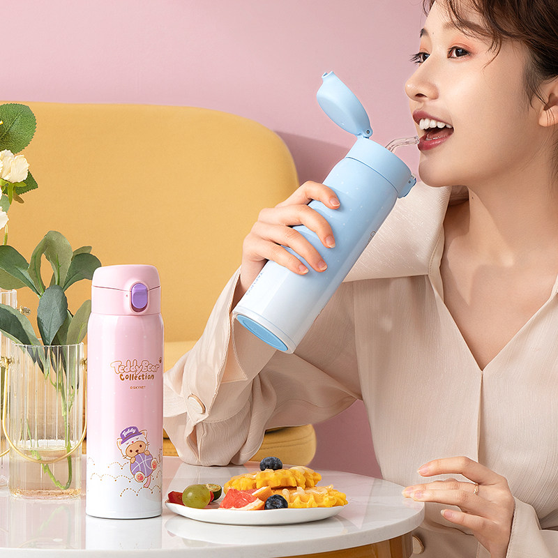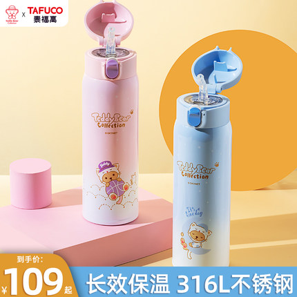 泰福高儿童吸管保温杯带316L不锈钢吸管杯水杯小学生冬季水壶女