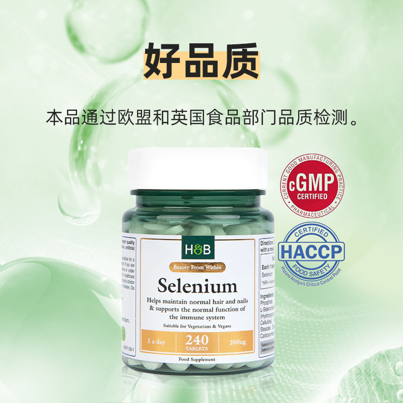 英国HB荷柏瑞硒元素240片高含量有机硒提升免疫呵护心脏女性补硒