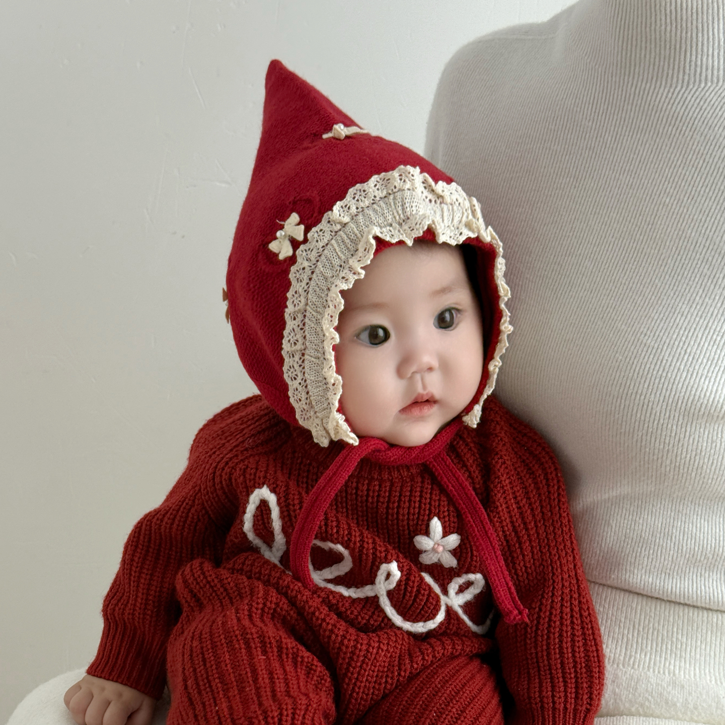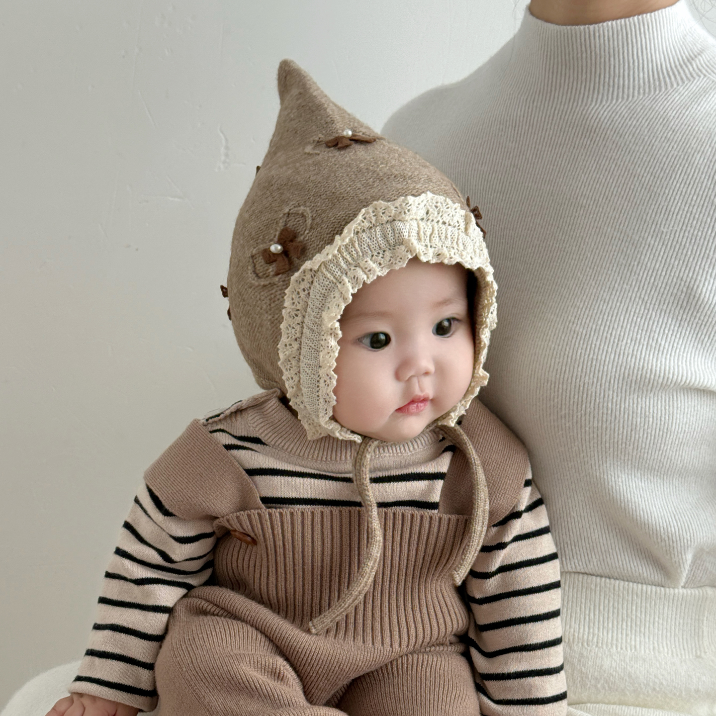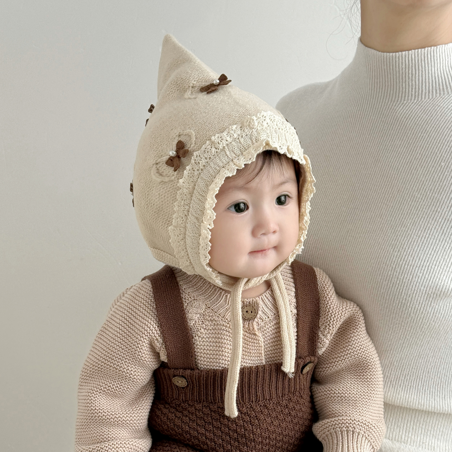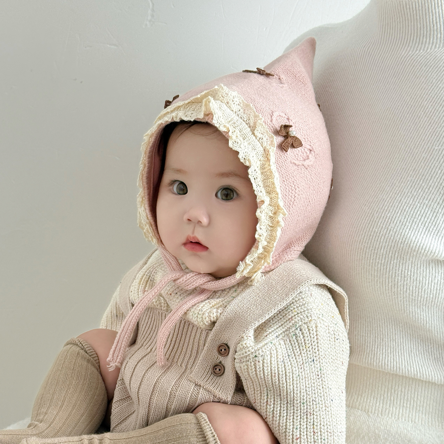 彼彼熊毛线帽针织帽蝴蝶结花边