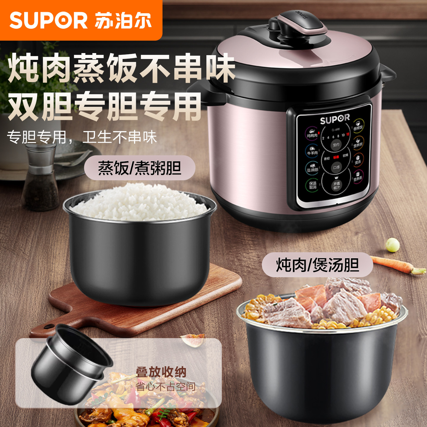 苏泊尔电压力锅家用智能5L双胆全自动电高压锅多功能快速电饭煲