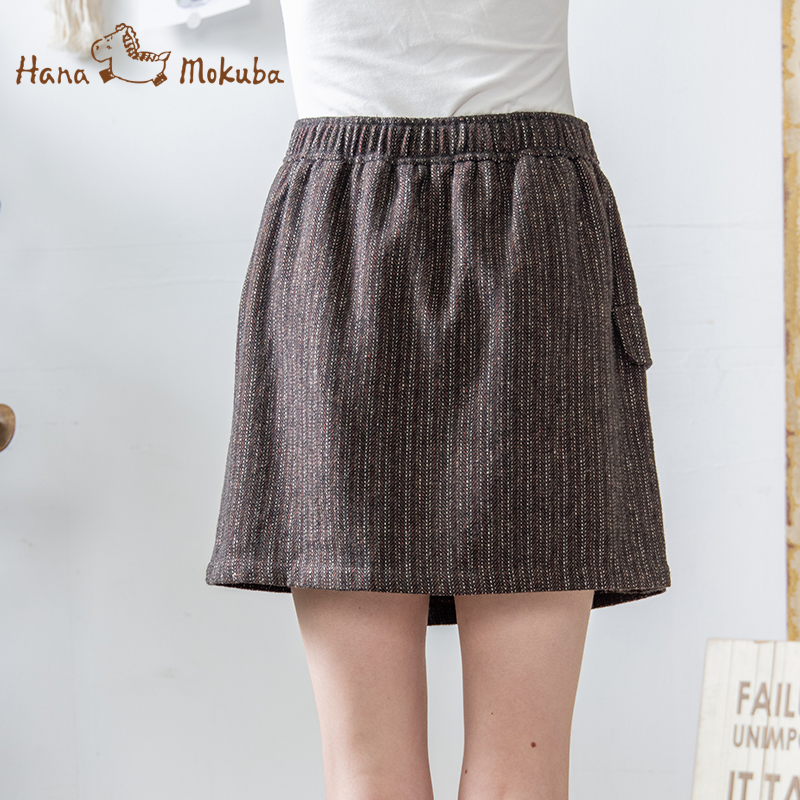 花木马春秋女装日系高腰毛呢a字短裙1Q22152