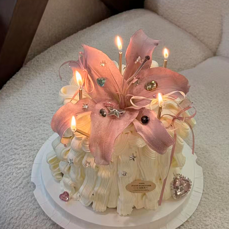 高级网红镶钻石七彩宝石花朵双头百合插件插牌甜品蛋糕装饰蜡烛