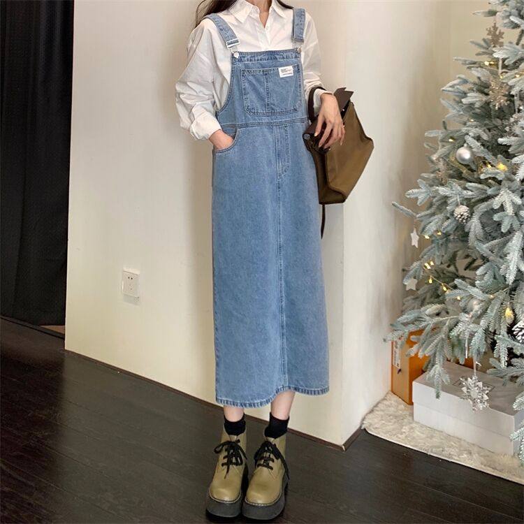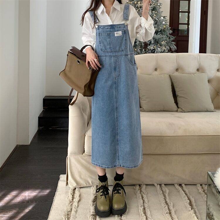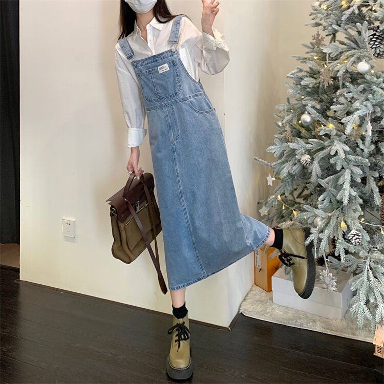 2022年夏季新款减龄牛仔背带长裙子宽松显瘦法式女裙小个子连衣裙