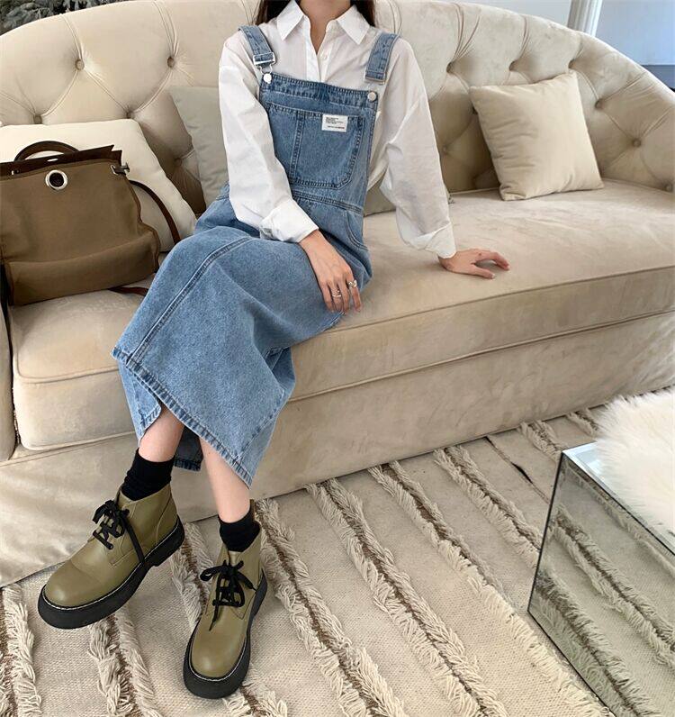 法式女裙小个子牛仔背带连衣裙