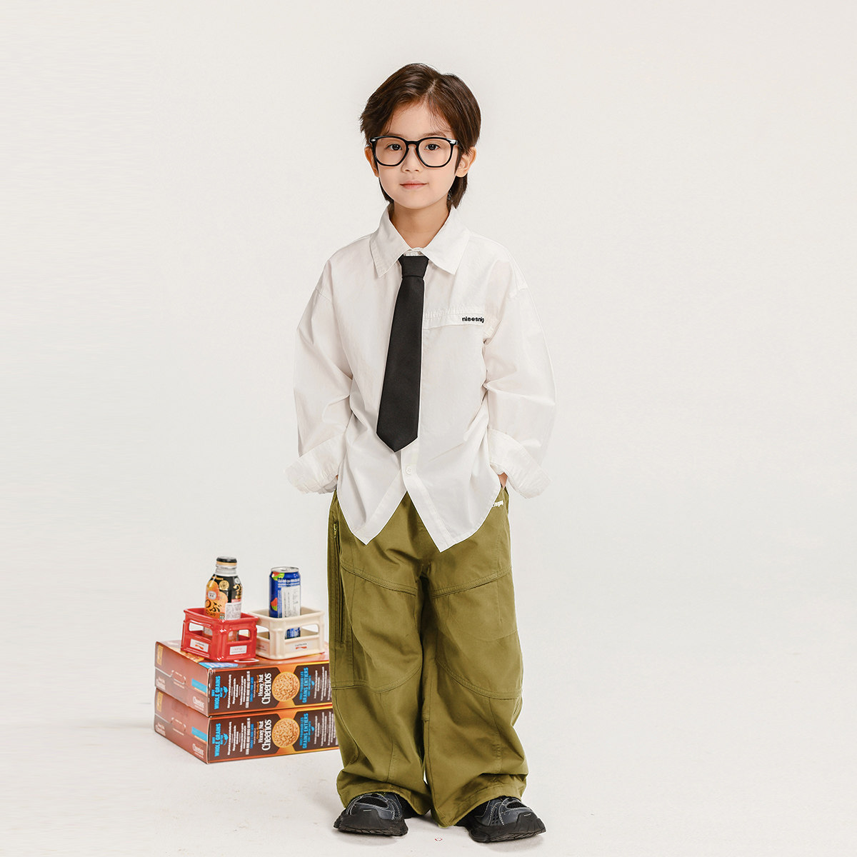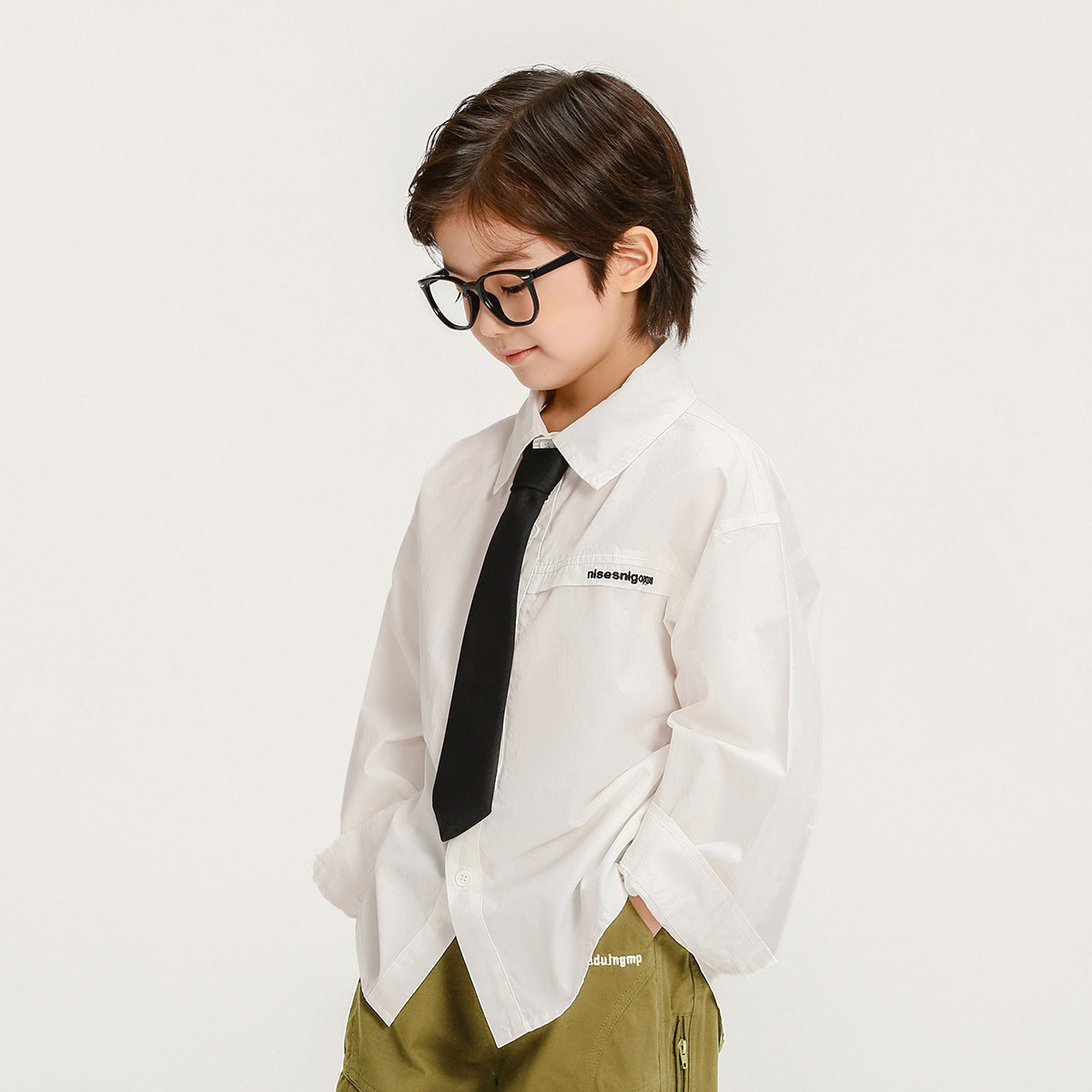 男童长袖衬衫春秋款2025秋装新款儿童中大童秋季格子衬衣上衣外套