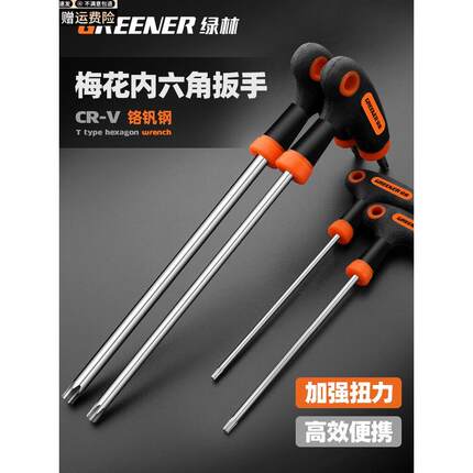 德国进口t型内六角扳手单个梅花六棱螺丝刀手动加长中孔六方扳手