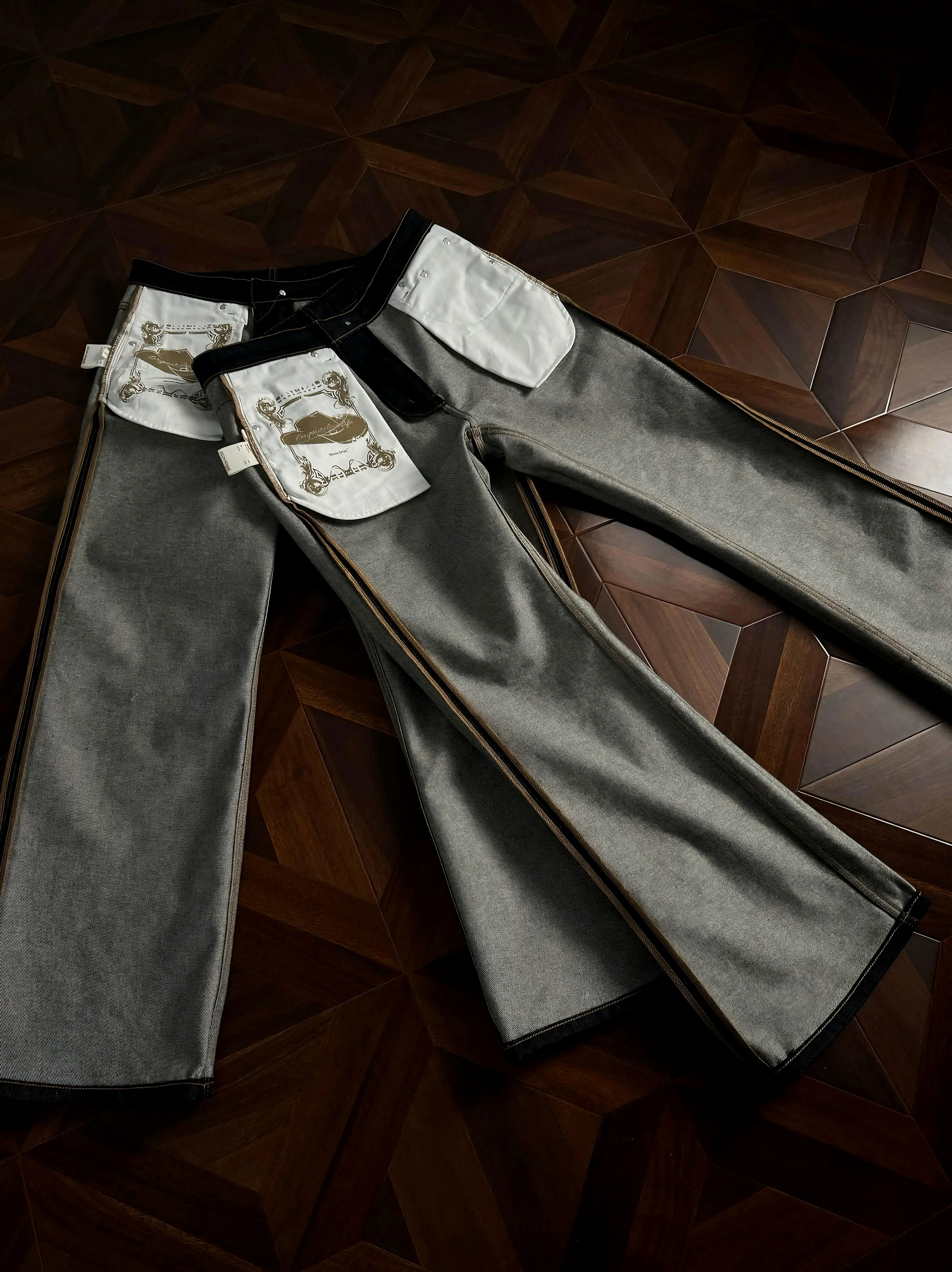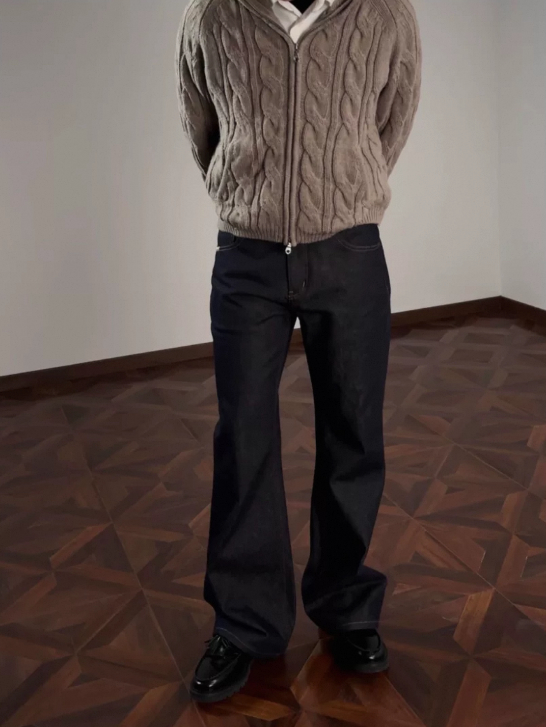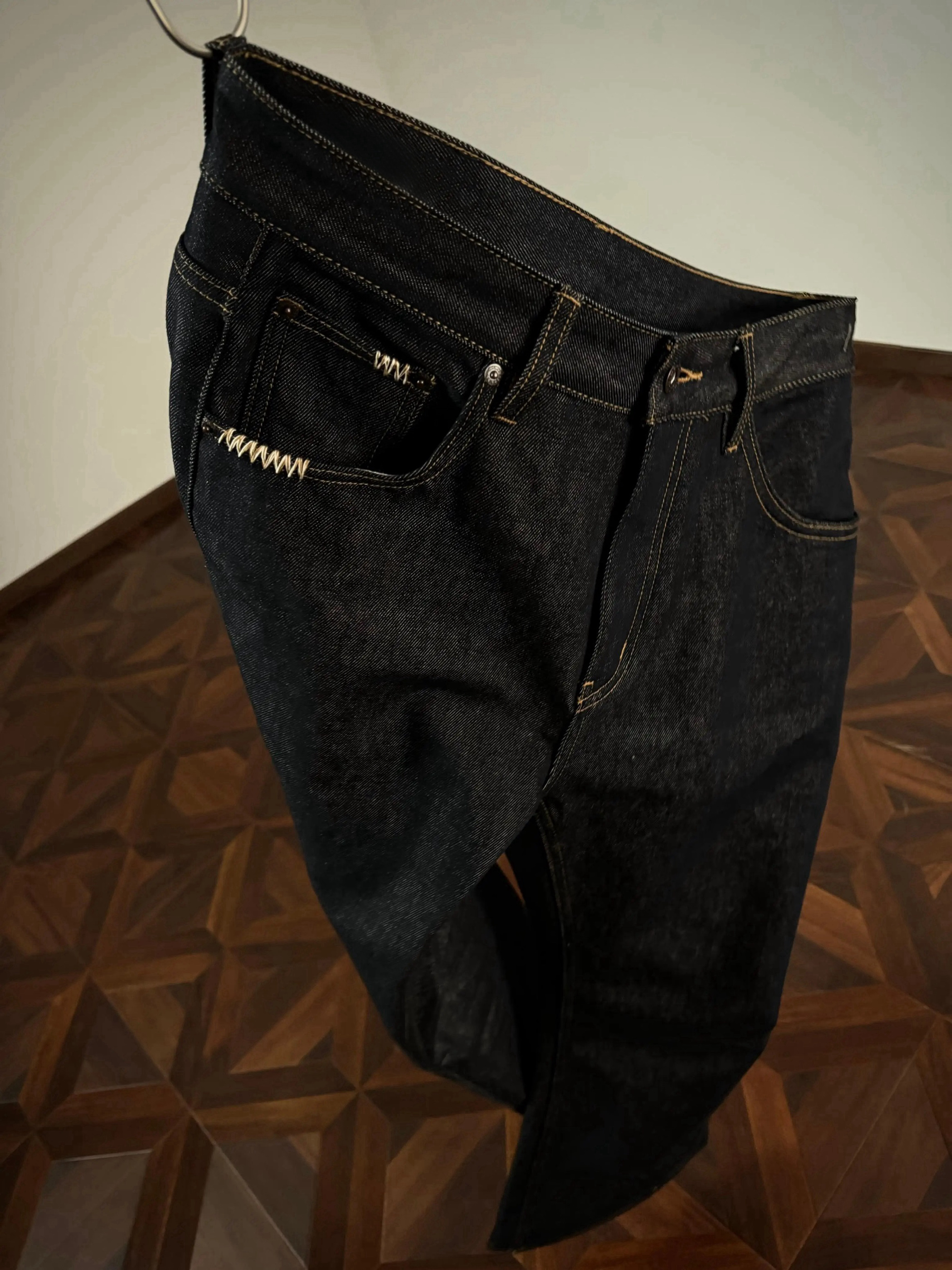 Online手缝针13.5盎司原牛A字直筒廓形固色牛仔裤差异化单品Denim
