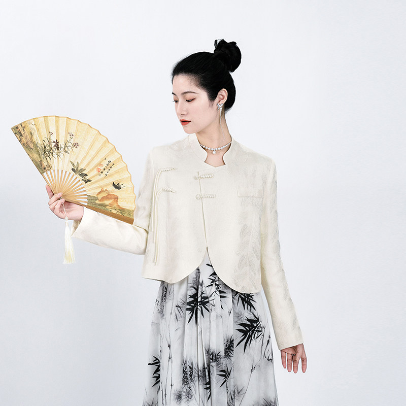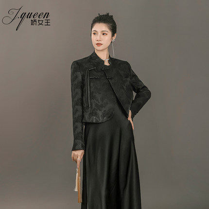 新中式国风短外套女秋季新款时尚复古高级设计感盘扣提花小西装