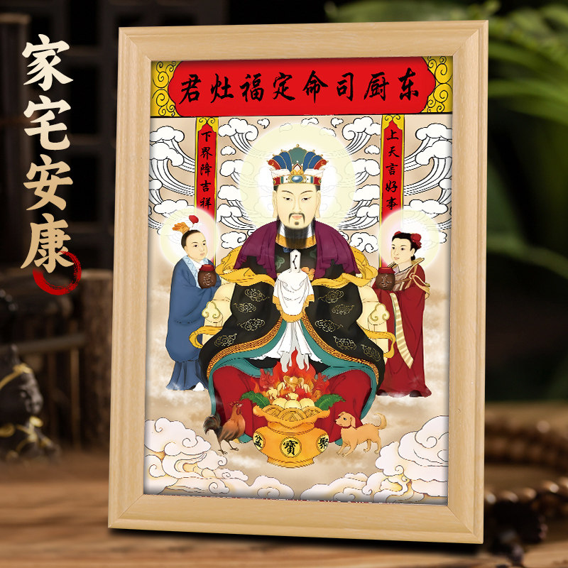 灶神灶王爷厨房挂画司命灶君图画像神像相框摆件供奉摆台家装饰画