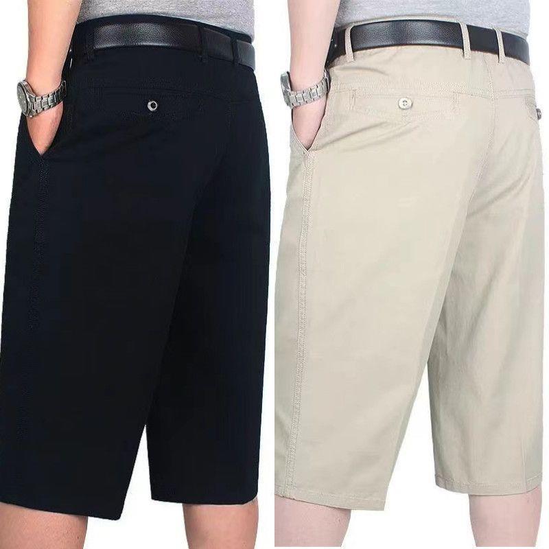100纯棉夏季七分裤休闲裤爸爸装高腰中老年西装短裤7分中裤薄款男