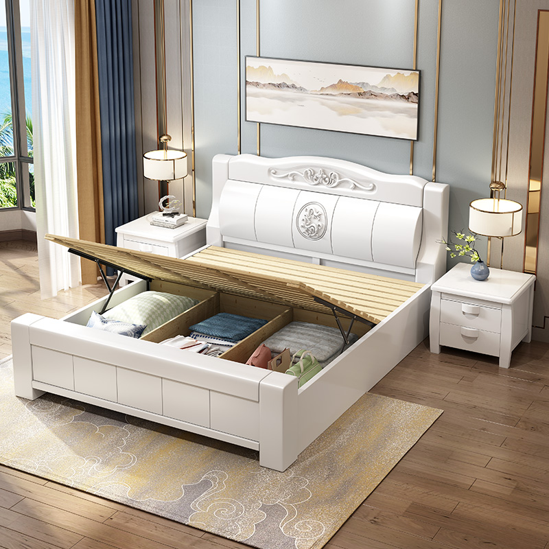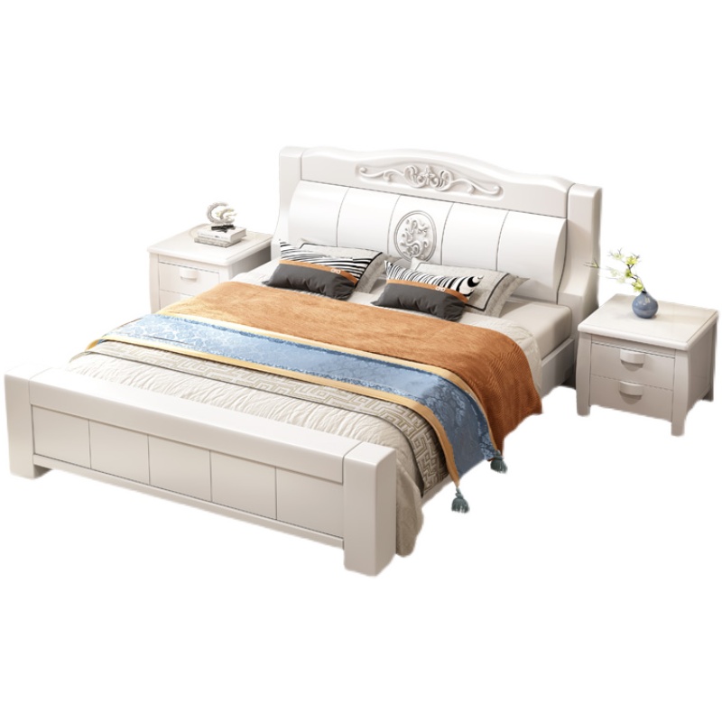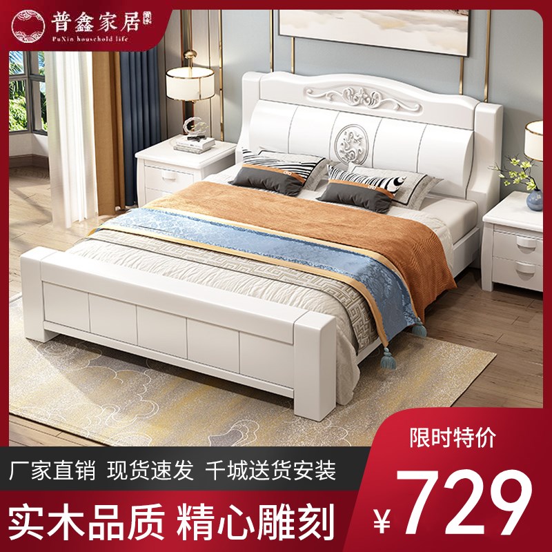 实木床现代简约中式双人床白色主卧经济型1.8米1.5米储物橡木婚床
