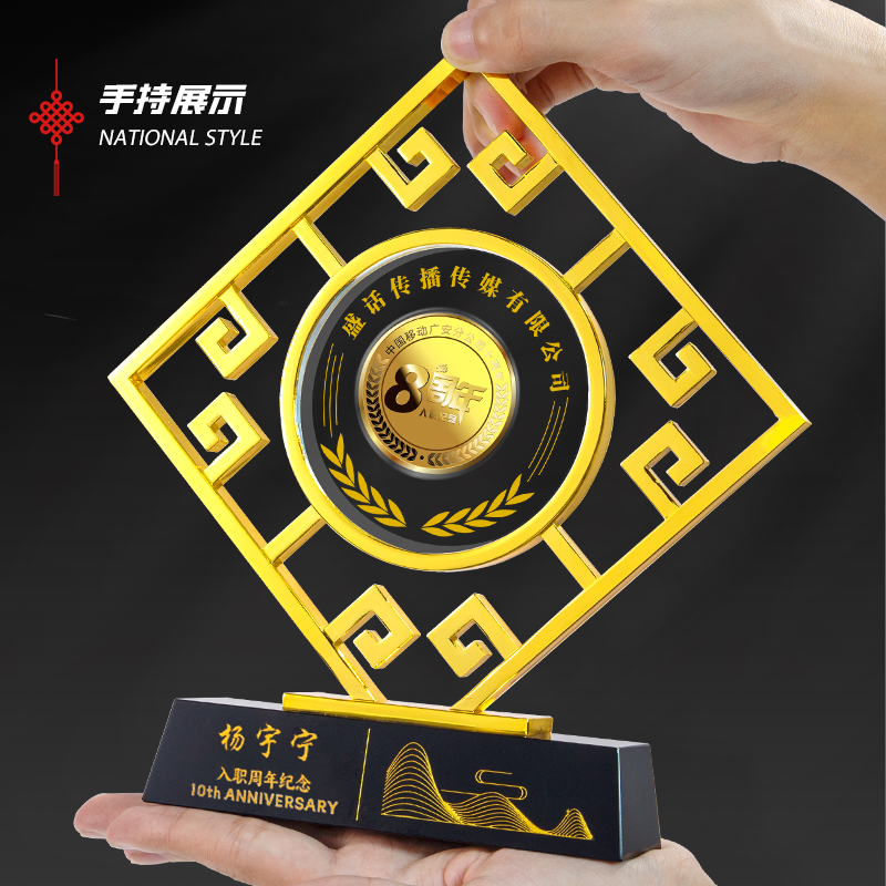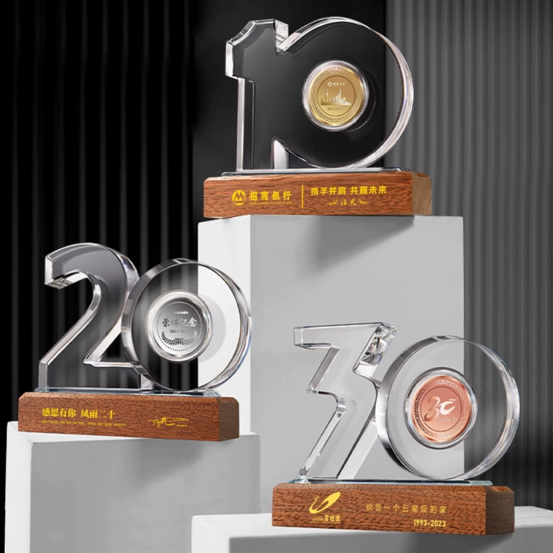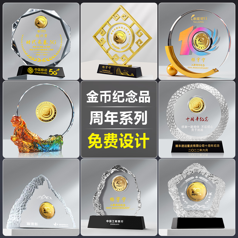 金银币定制周年庆纪念礼品纯银镶嵌水晶奖杯摆件公司员工企业上市