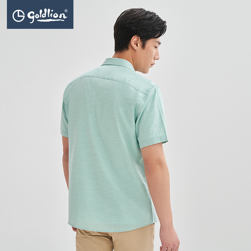 金利来夏季新款男士衬衣纯棉牛津纺透气吸湿翻领纯色休闲短袖衬衫