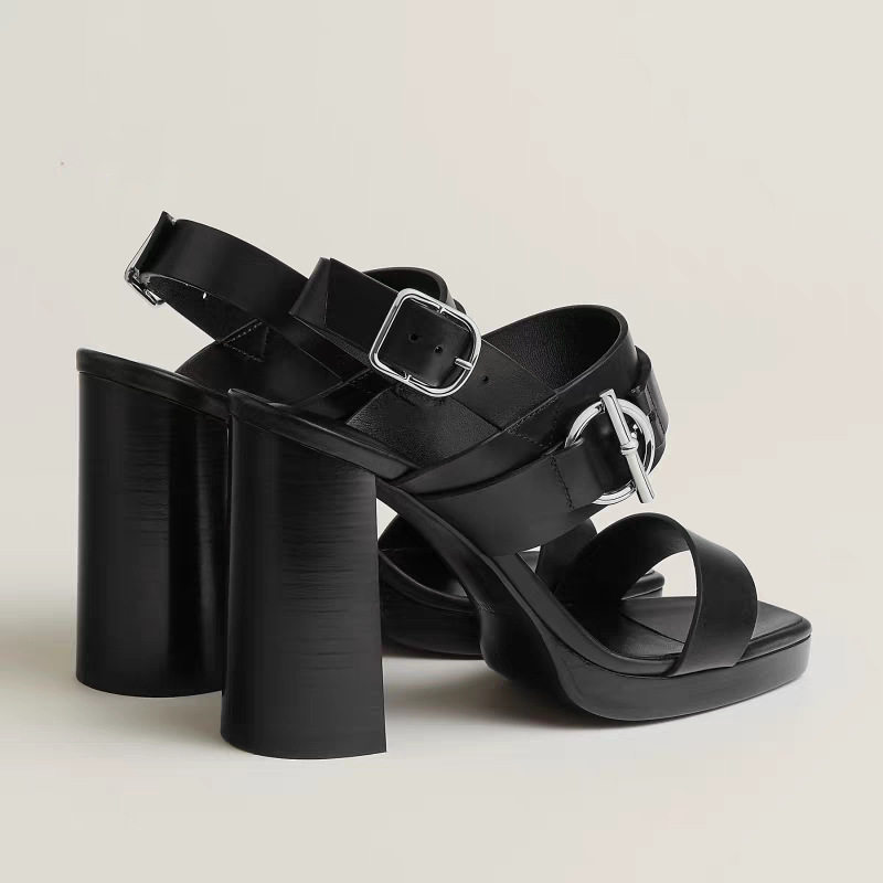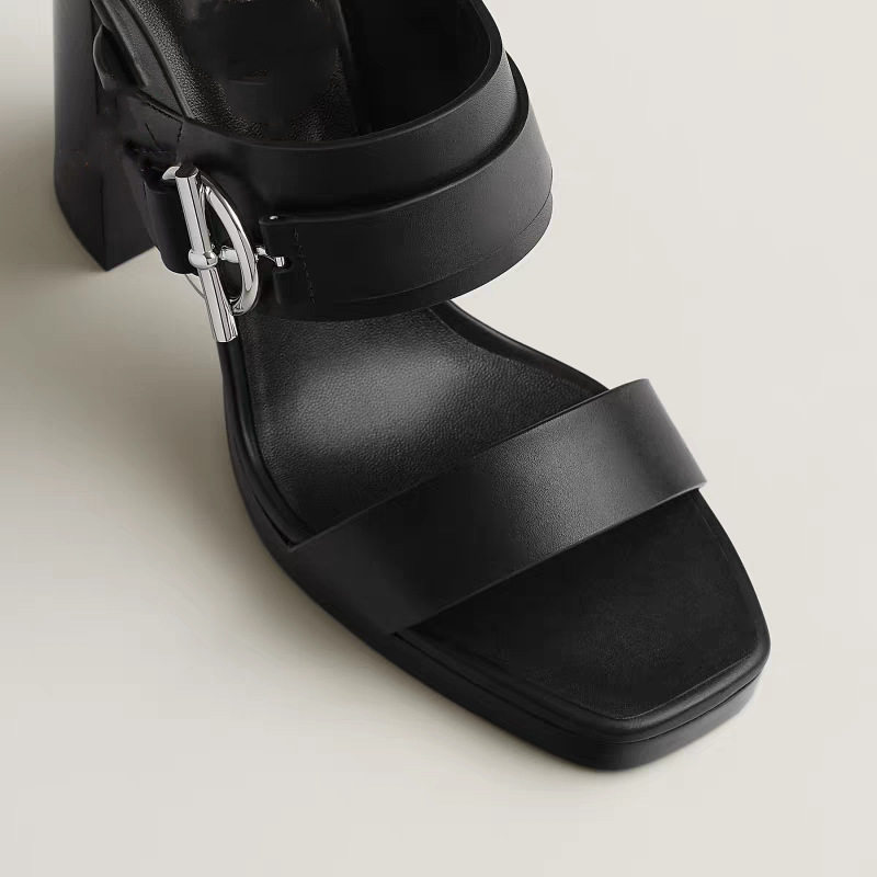 外贸欧美风方头露趾凉鞋时尚一字扣金属扣件防水台后绊带粗高跟鞋