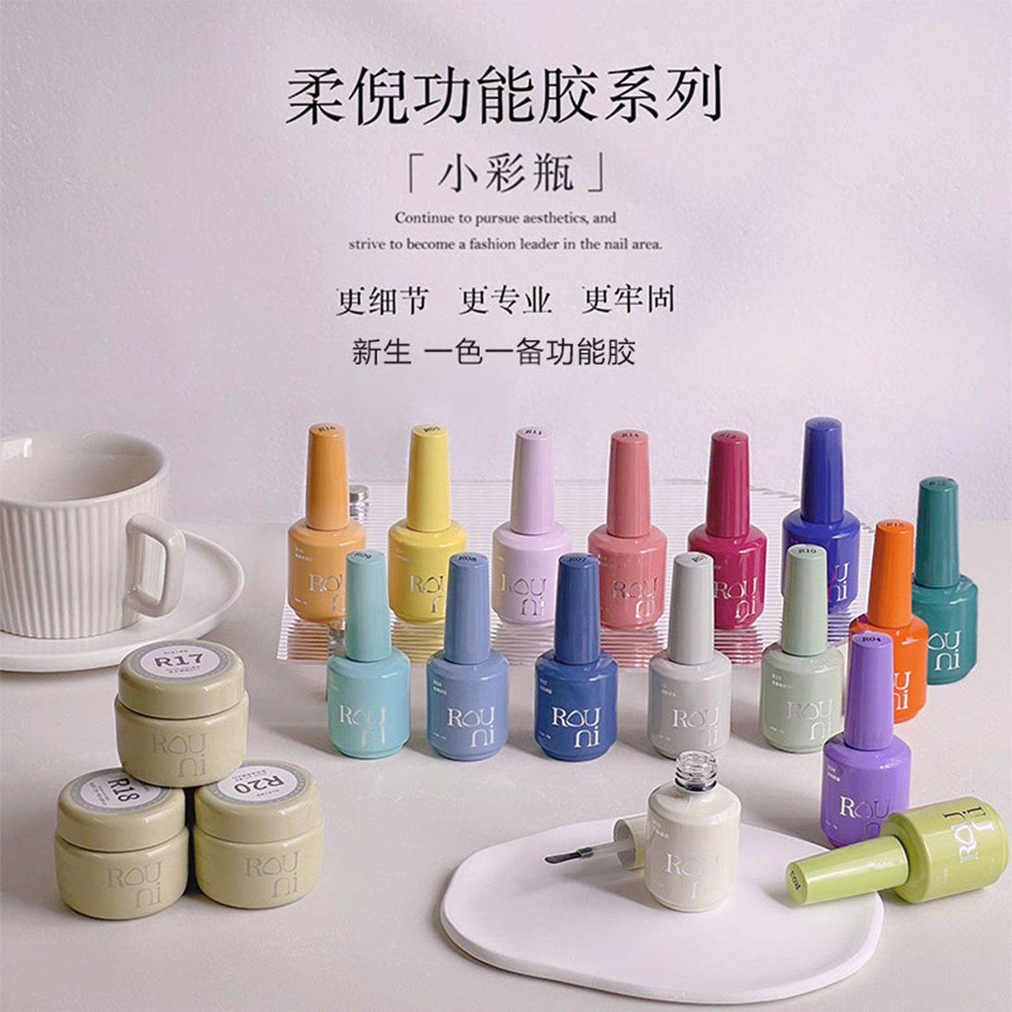 柔倪ROUNI小彩瓶功能胶R21黑钻镀晶封层美甲加固甲油胶建构胶底胶