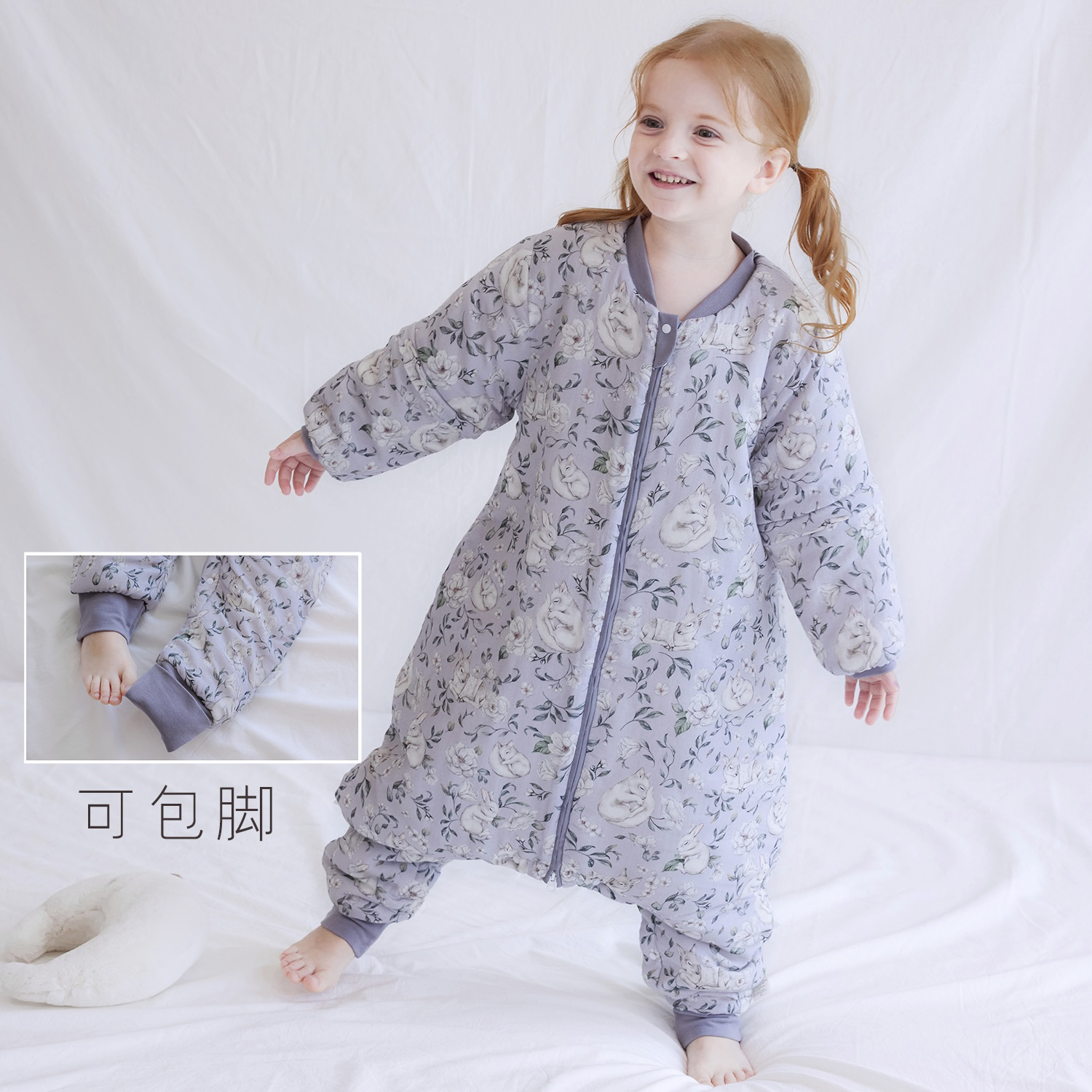 婴儿秋冬夹棉睡袋儿童宝宝分腿防踢被可拆袖可包脚可调节长度保暖