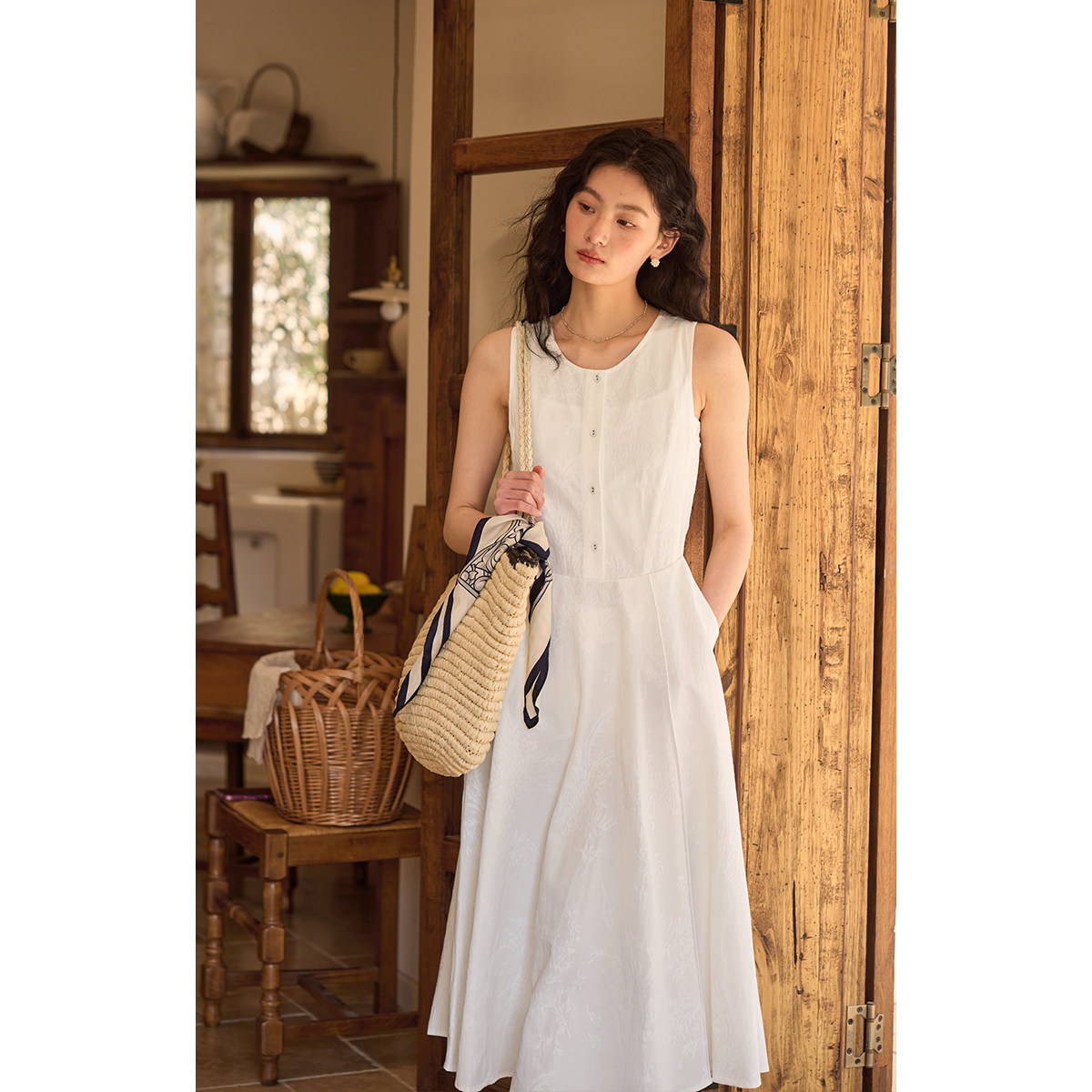solighter 背心吊带连衣裙气质无袖绿色显瘦露锁骨美背长裙夏季