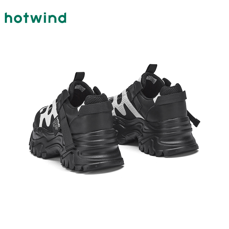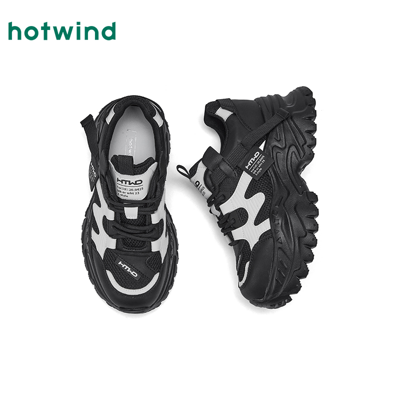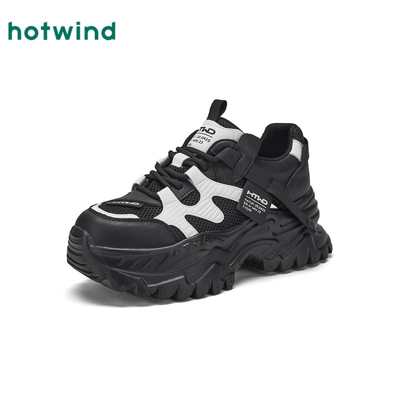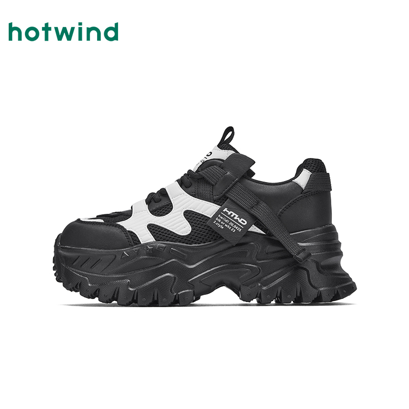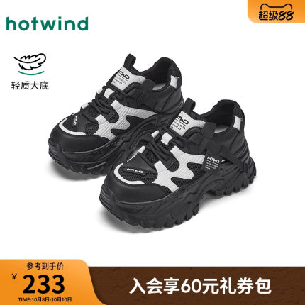 热风厚底老爹鞋女款2025年秋季新款百搭黑色运动休闲鞋增高女鞋子