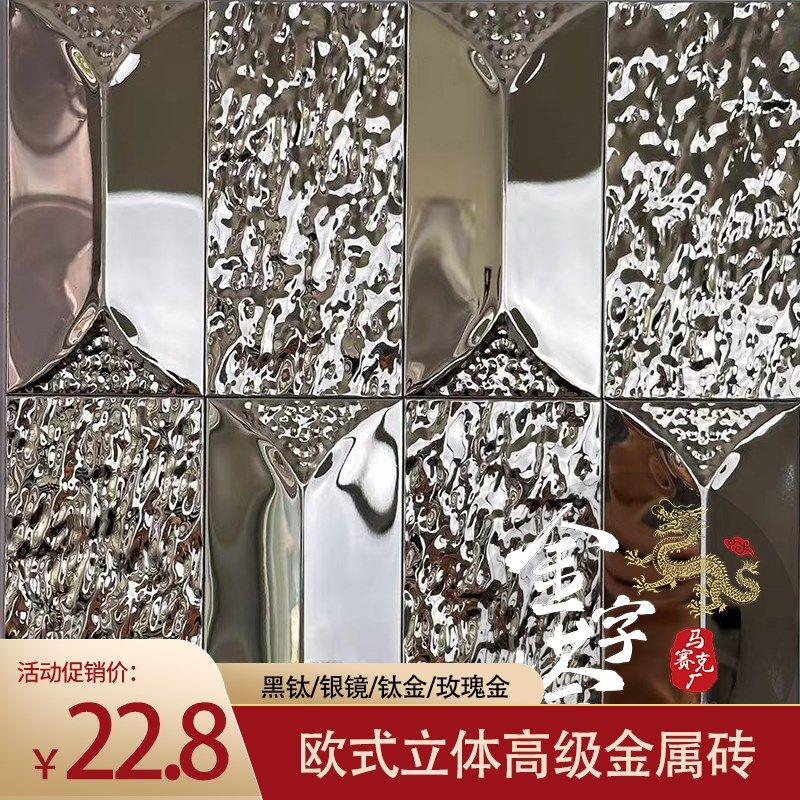 金属马赛克贴片背景墙长条不锈钢瓷砖电镀镜面墙贴自粘墙砖卫生间