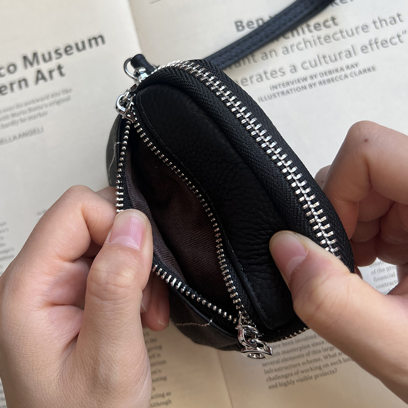 新款头层牛皮女士小包零钱包手拎大容量双拉链小钱包口红耳机收纳