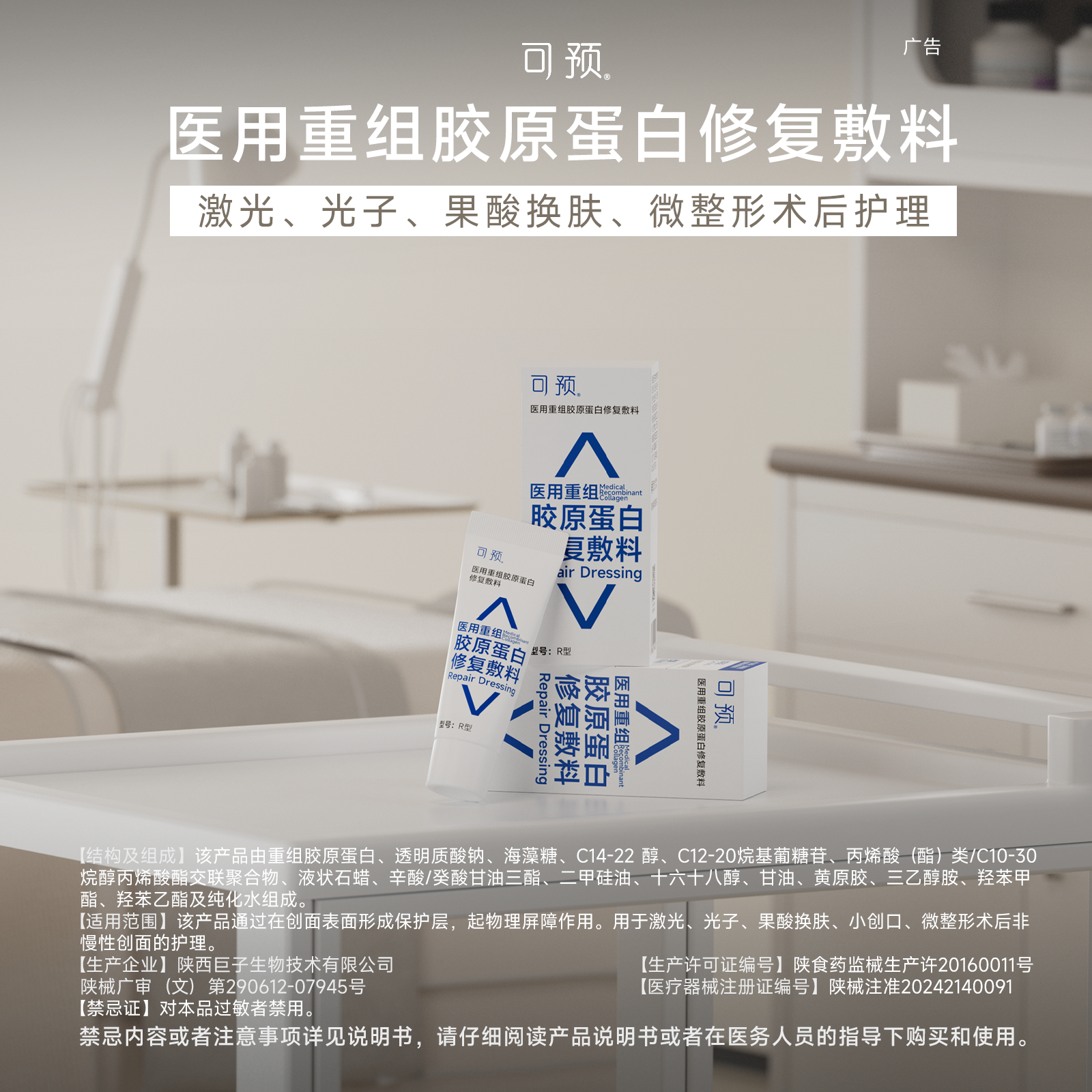 可预医用重组胶原蛋白修复敷料R型敏感肌皮肤屏障修复乳5g两只装