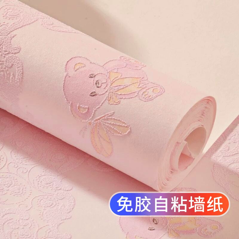 加厚墙纸温馨自粘少女p心防水防潮贴纸温馨男女孩儿童房装饰壁纸