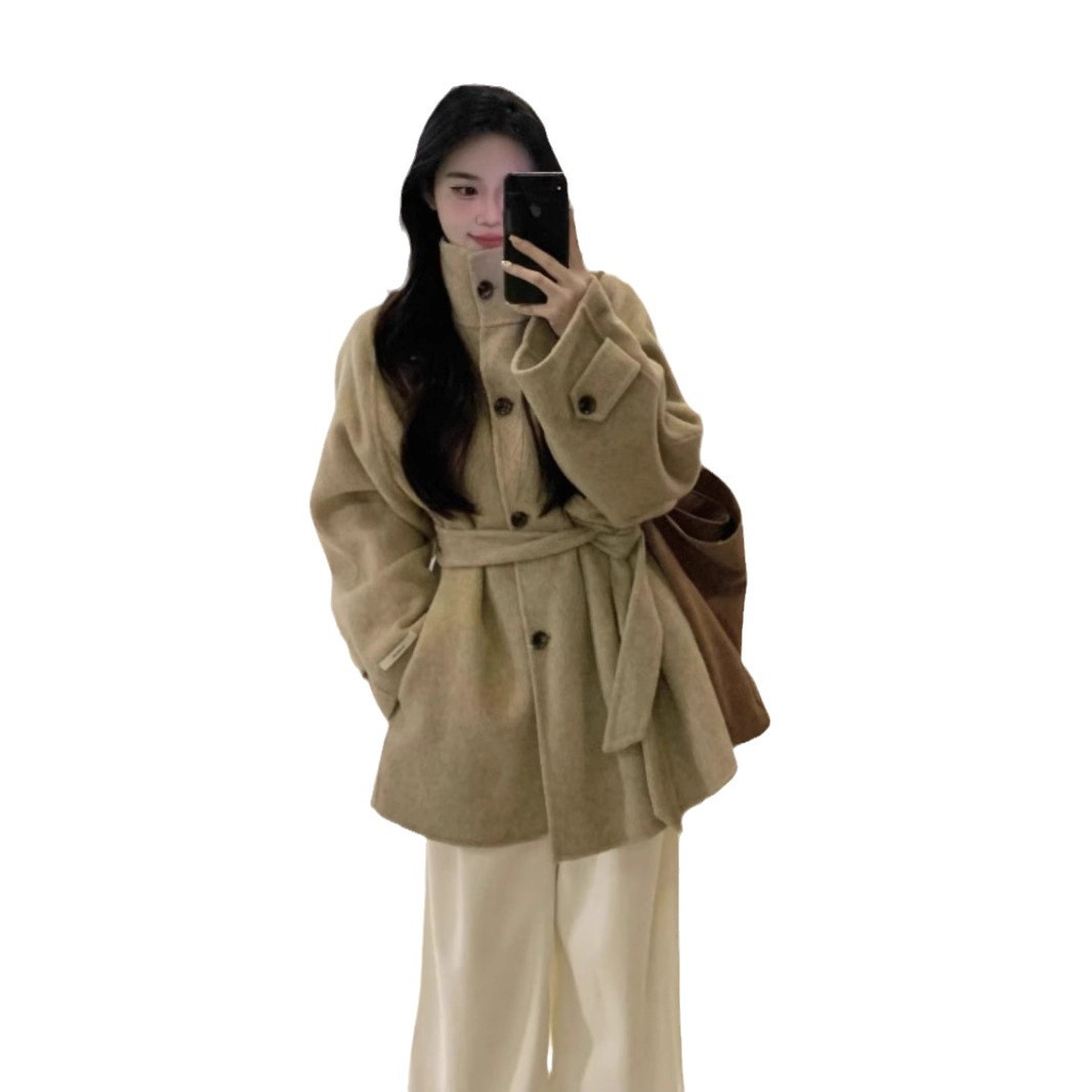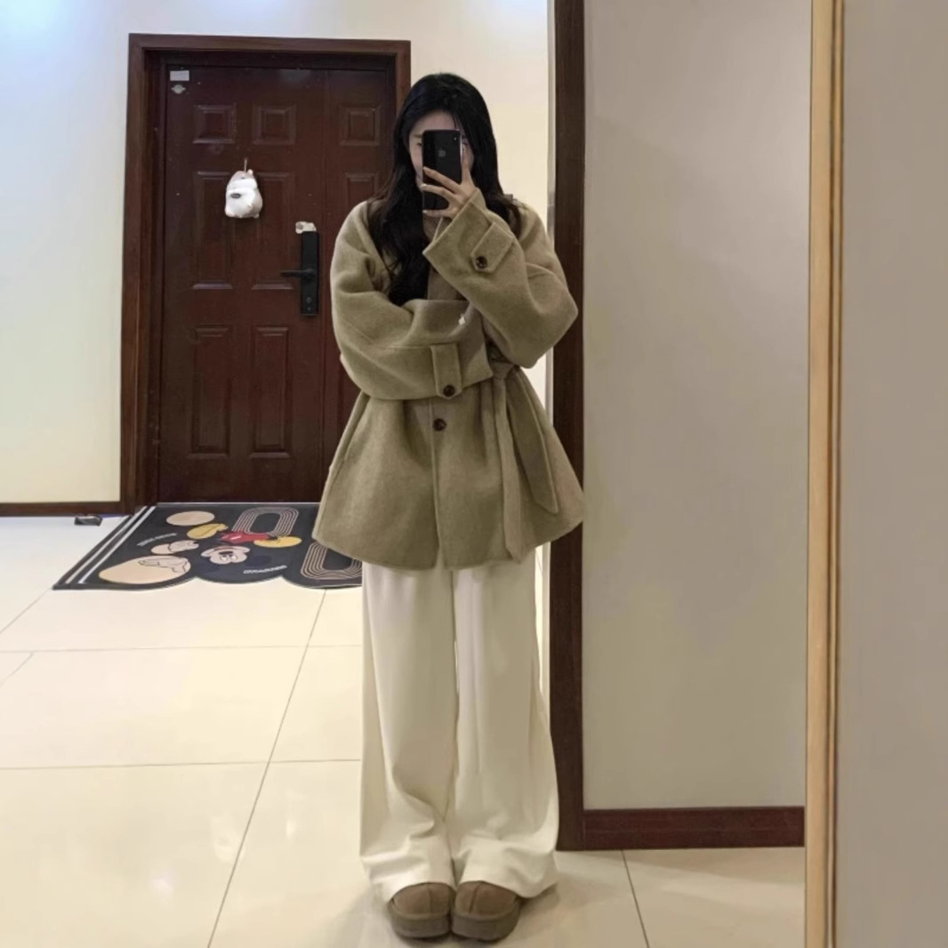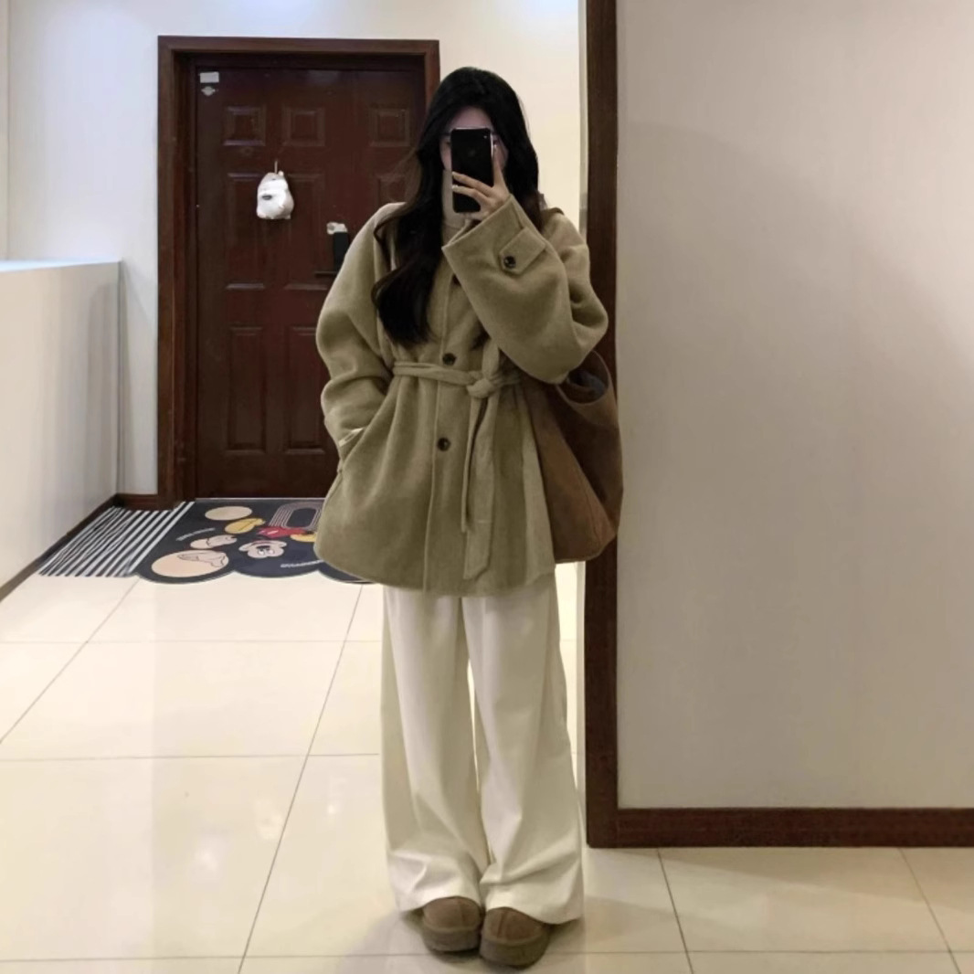 韩系卡其色毛呢外套女2025年新款感洋气小个子深秋初冬季大衣