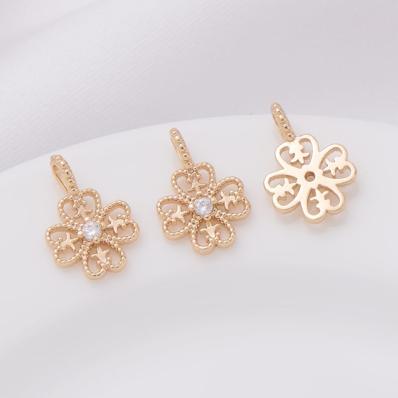 14K包金镶锆石四叶草五角星吊坠手工diy项坠首饰材料月亮手链挂件