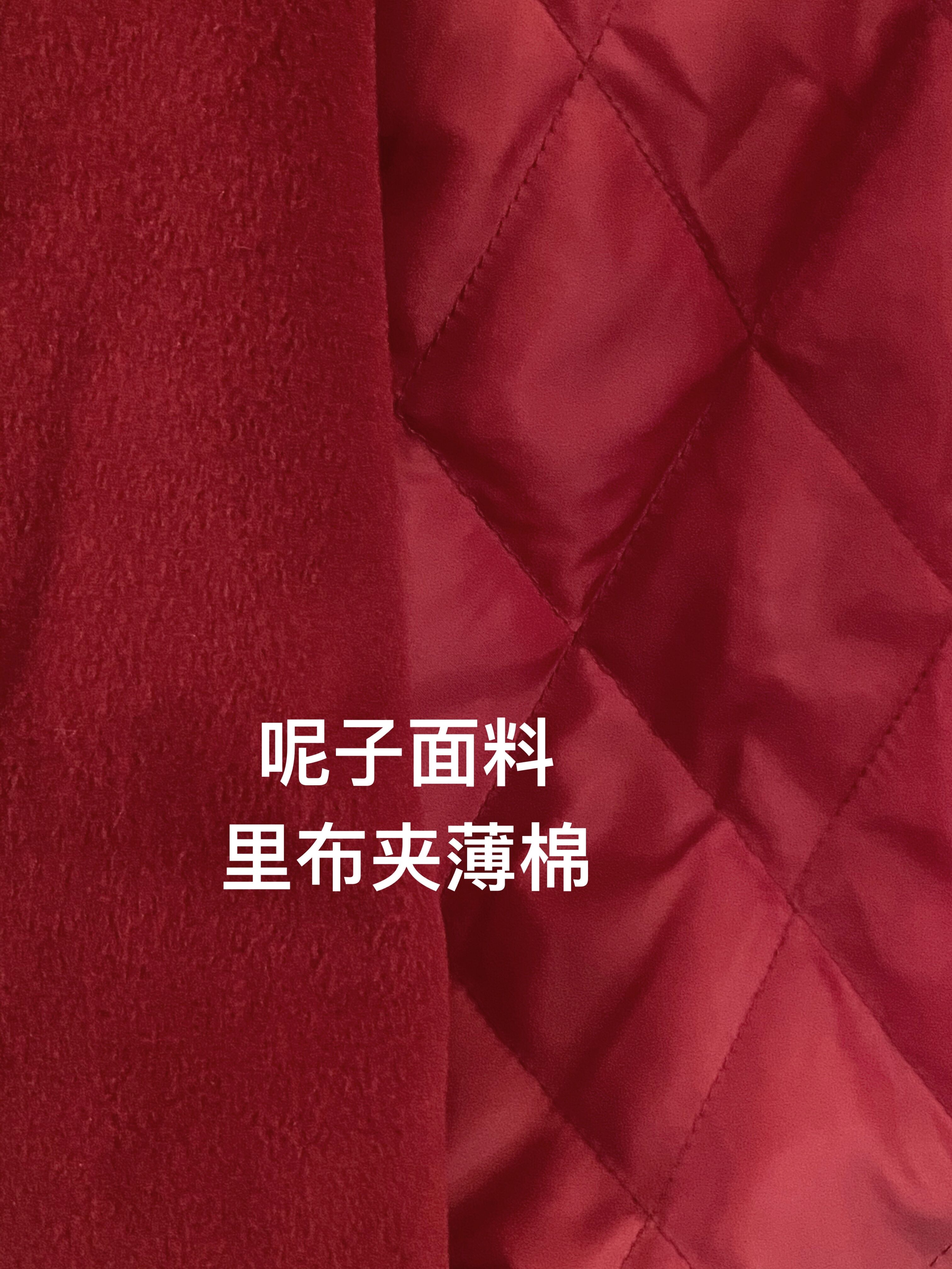 喵吉复古翻领新中式气质呢子大衣小个子中长款红色毛呢外套女秋冬