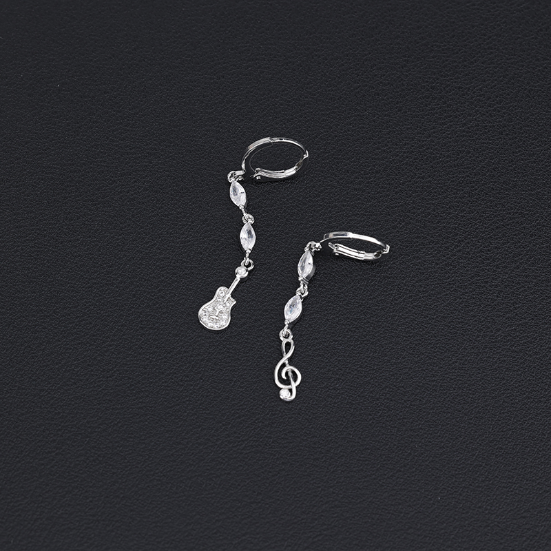 s925银针吉他音符流苏耳扣女不对称2024年新款小众耳环显脸瘦耳饰